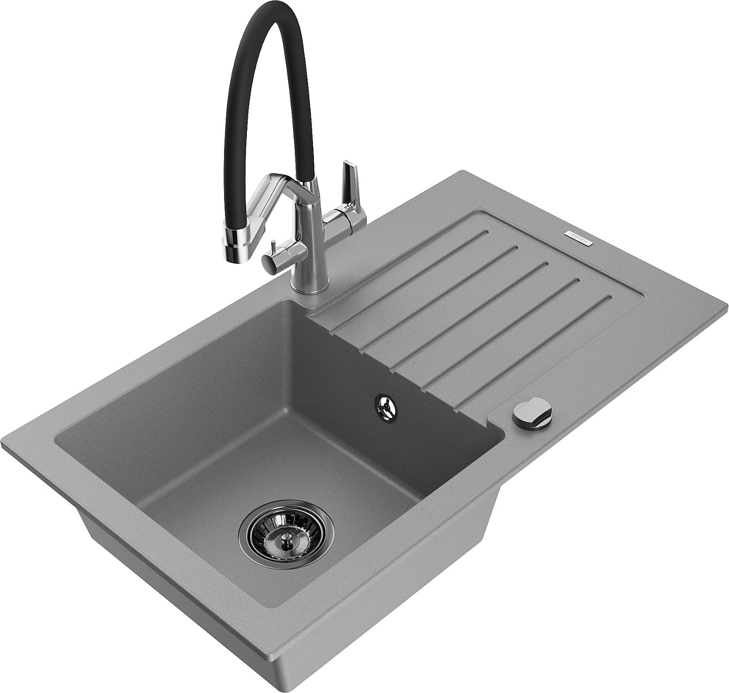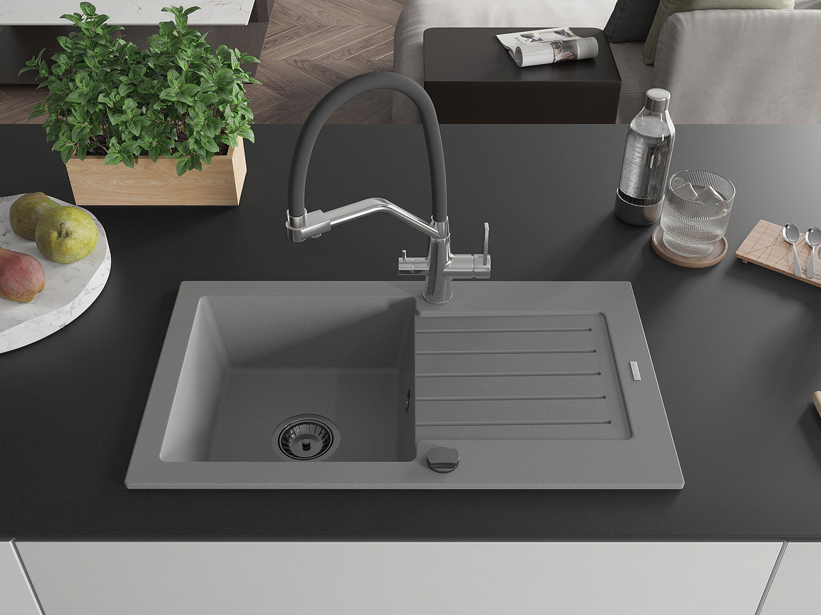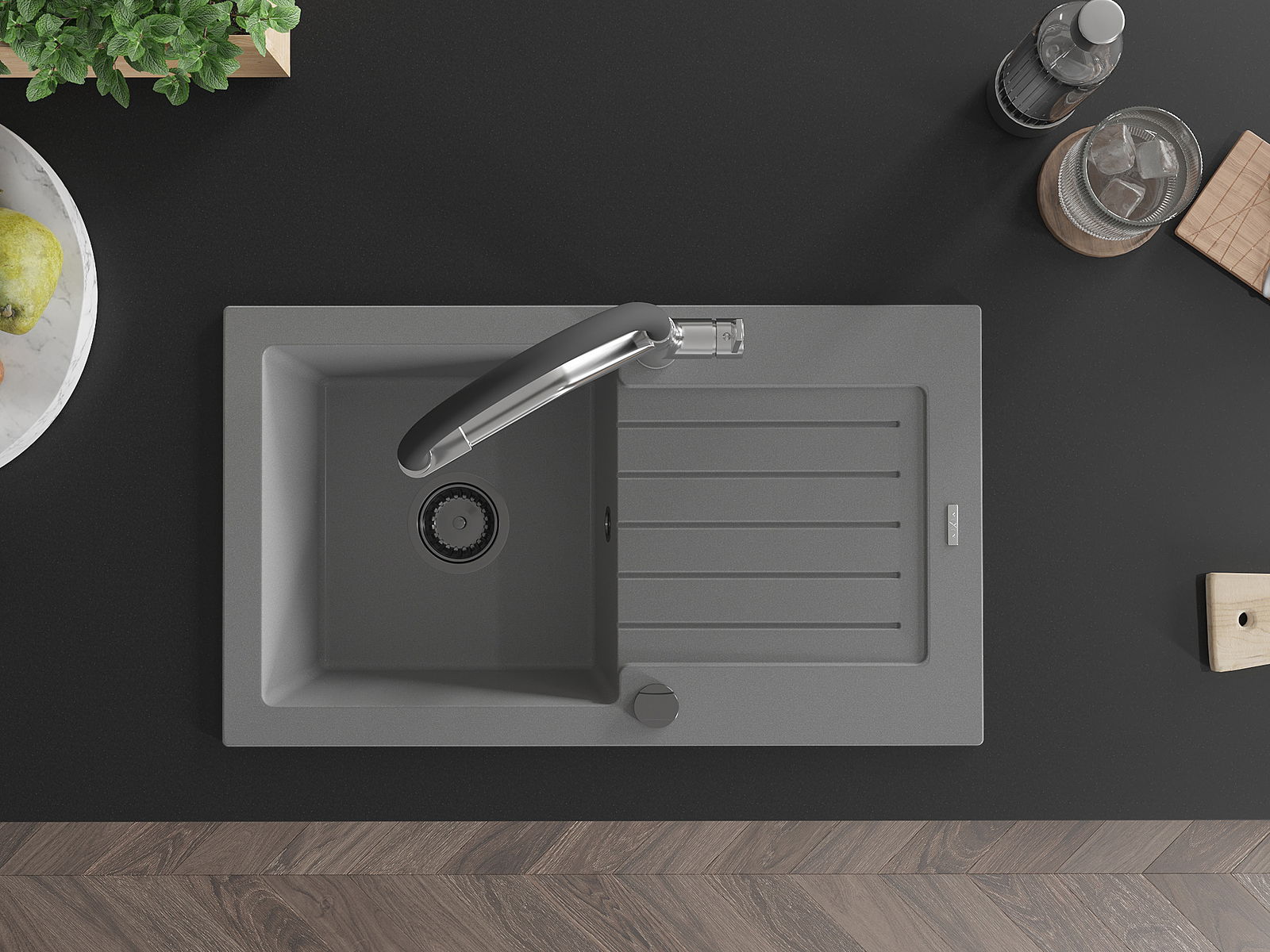 Mexen Pablo évier en granit 1 bac avec égouttoir et mitigeur cuisine Duo, gris - 6510-71-671701-07-B