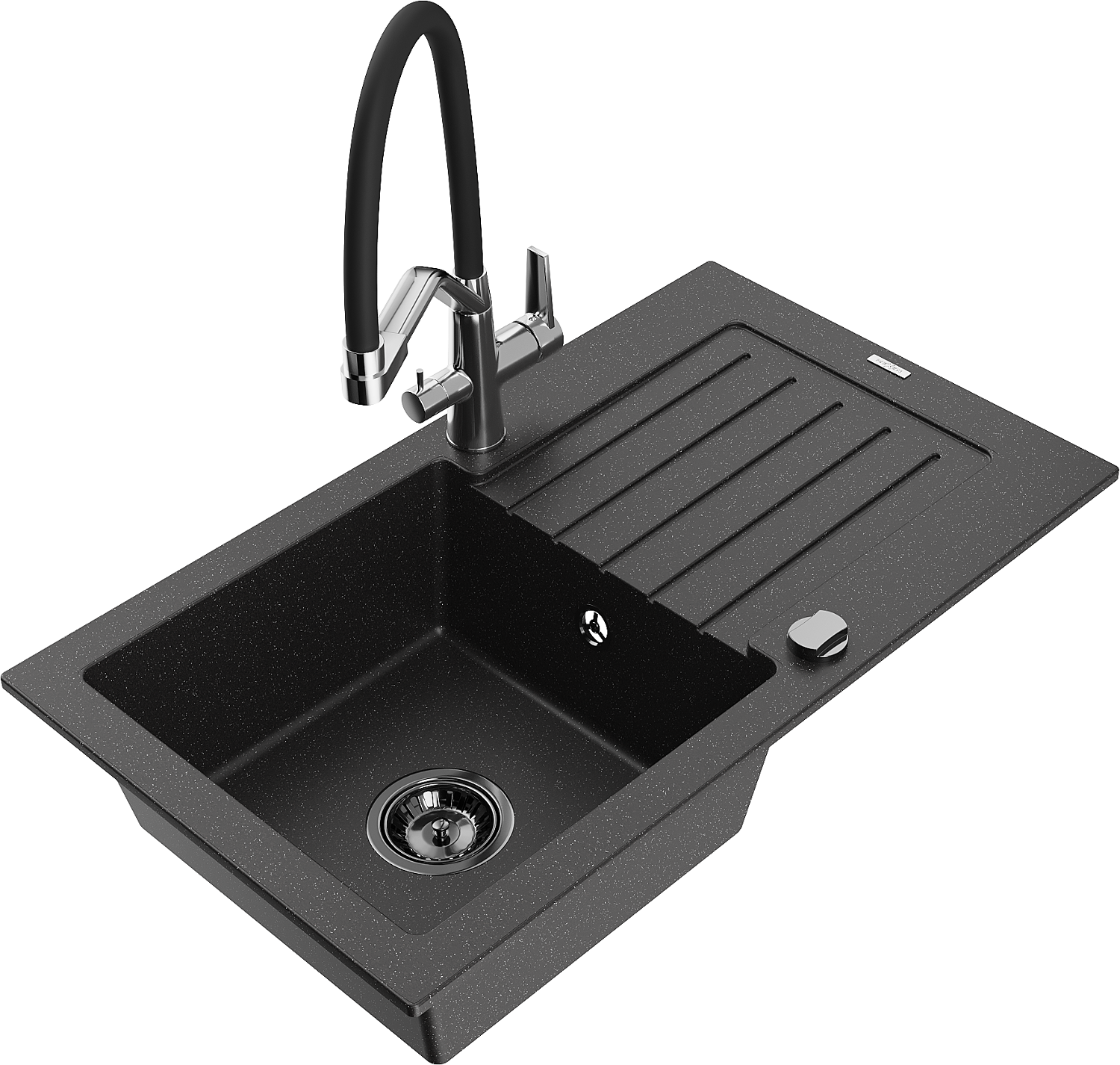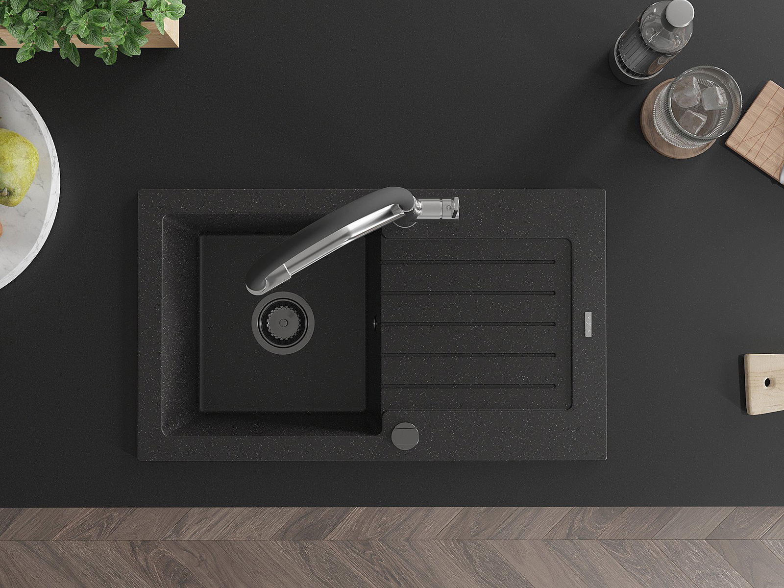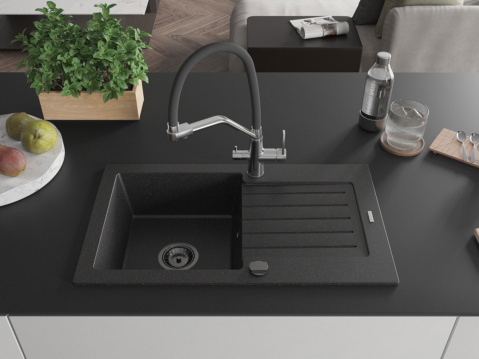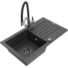 Mexen Pablo évier en granit 1 bac avec égouttoir et robinet de cuisine Duo, noir/métallique argent - 6510-73-671701-07-B