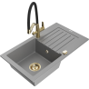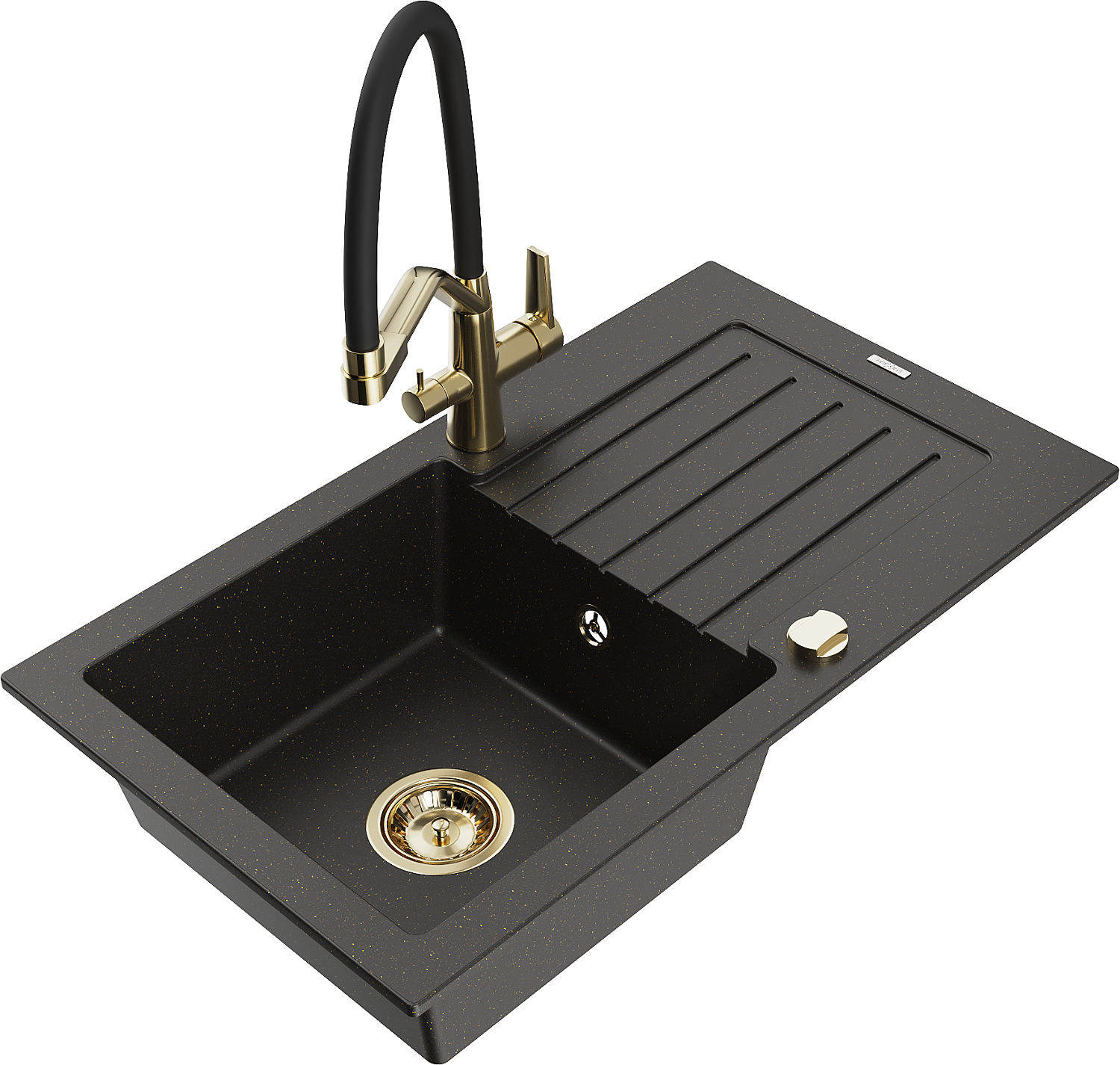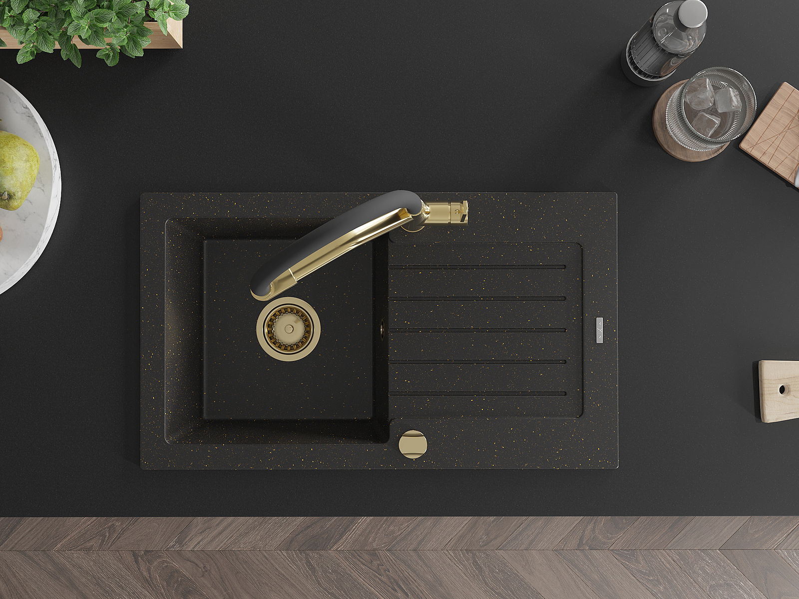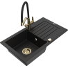 Mexen Pablo évier de cuisine en granit à 1 bac avec égouttoir et robinet Duo, noir/métallique or - 6510-75-671701-57-G