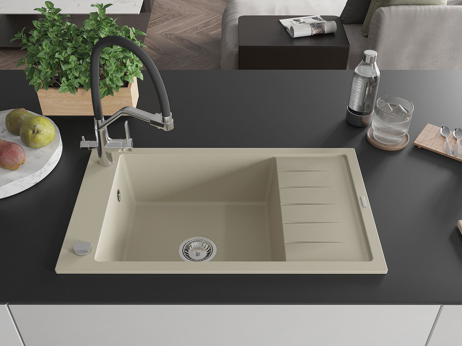 L'évier est fabriqué en granit de haute qualité. Il constitue un complément élégant et surtout pratique pour toute cuisine, quel que soit son style. La qualité et la durabilité du granit garantissent de nombreuses années d'utilisation.