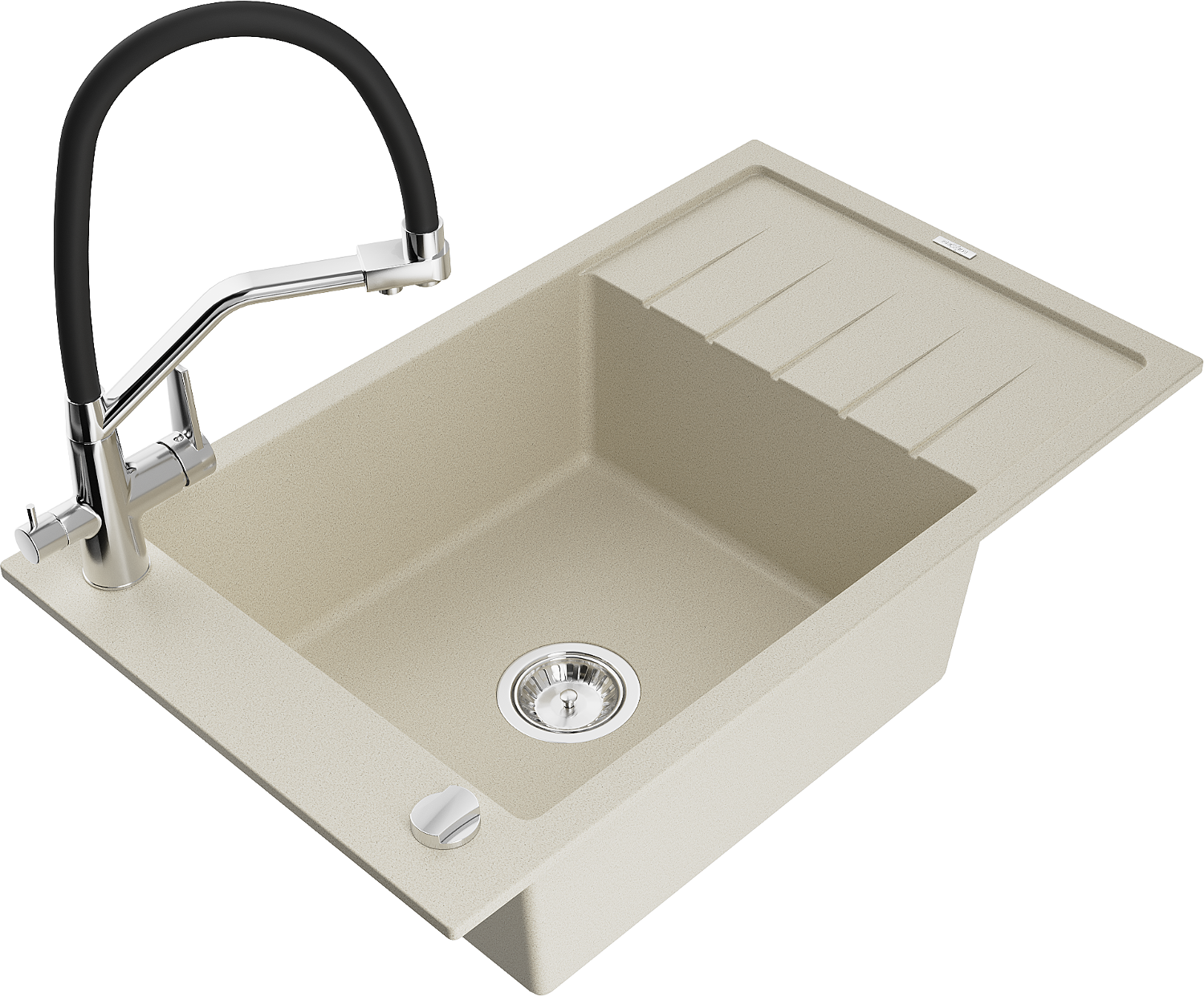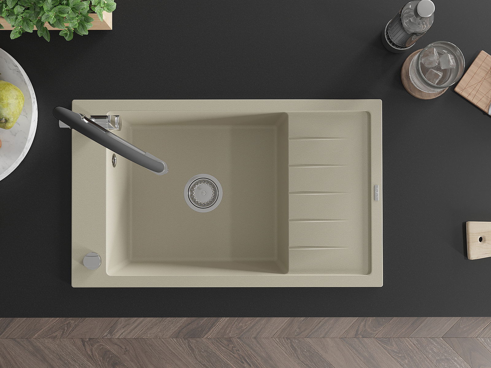 Mexen Elias évier de cuisine en granit à 1 bac avec égouttoir et robinet cuisine Duo, beige - 6511-69-671701-07