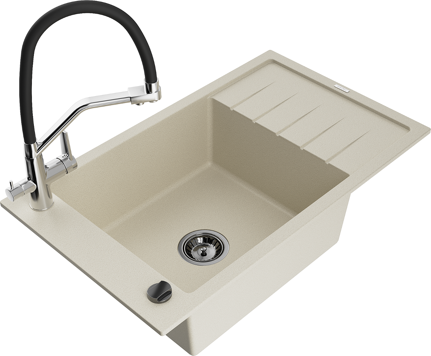 Mexen Elias évier en granit à 1 bac avec égouttoir et robinet de cuisine Duo, beige - 6511-69-671701-07-B