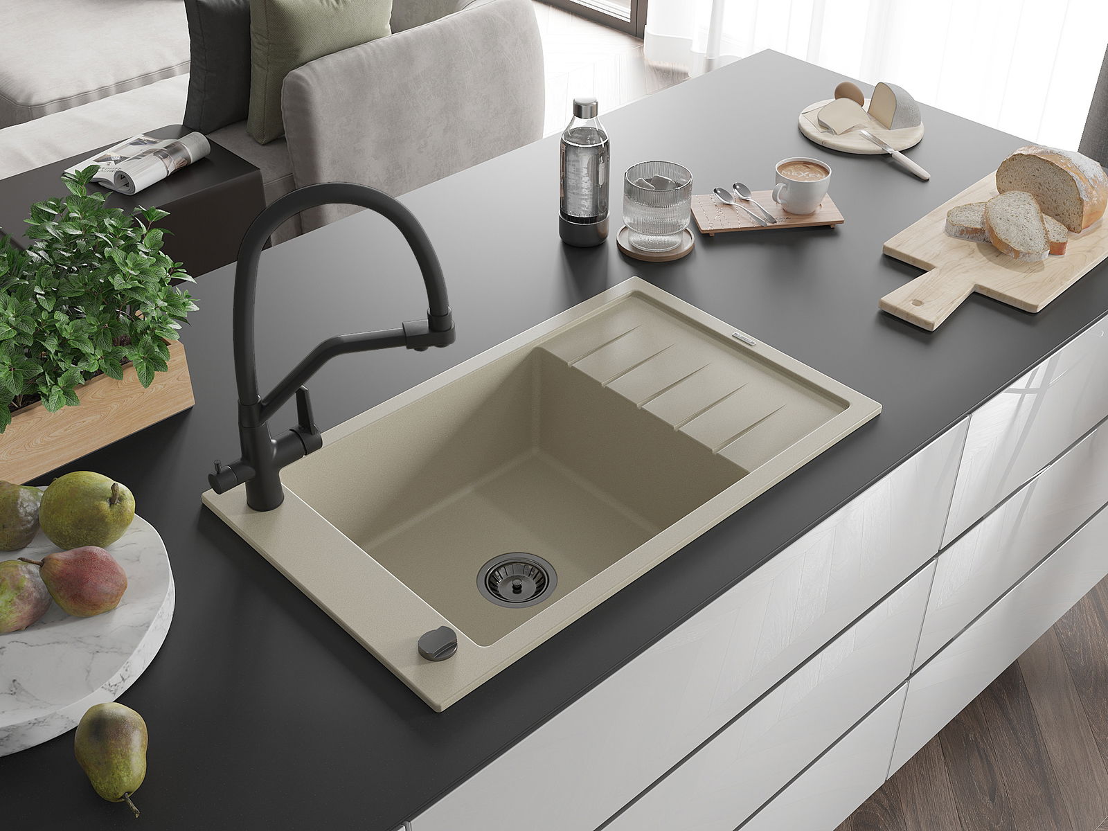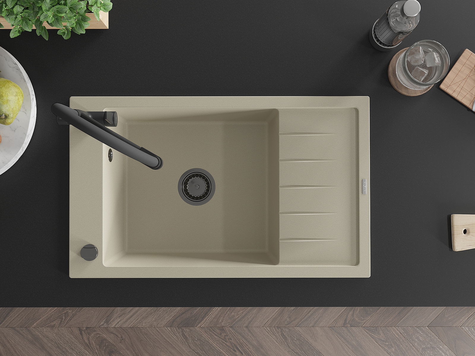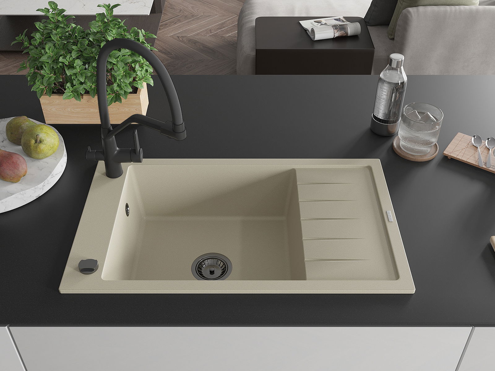 Mexen Elias évier de cuisine en granit 1 bac avec égouttoir et mitigeur Duo, beige - 6511-69-671701-70-B