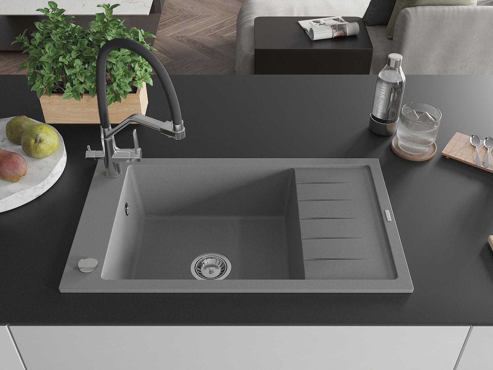 L'évier est fabriqué en granit de haute qualité. Il constitue un complément élégant et surtout pratique pour toute cuisine, quel que soit son style. La qualité et la durabilité du granit garantissent de nombreuses années d'utilisation.