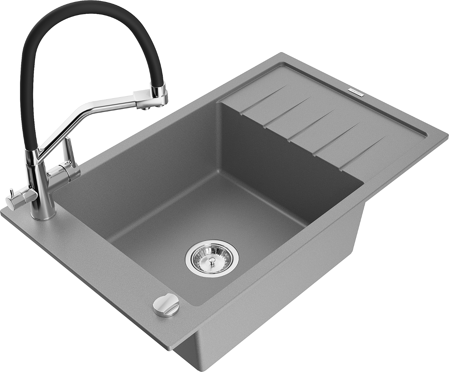 Mexen Elias évier de cuisine en granit 1 bac avec égouttoir et robinet Duo, gris - 6511-71-671701-07