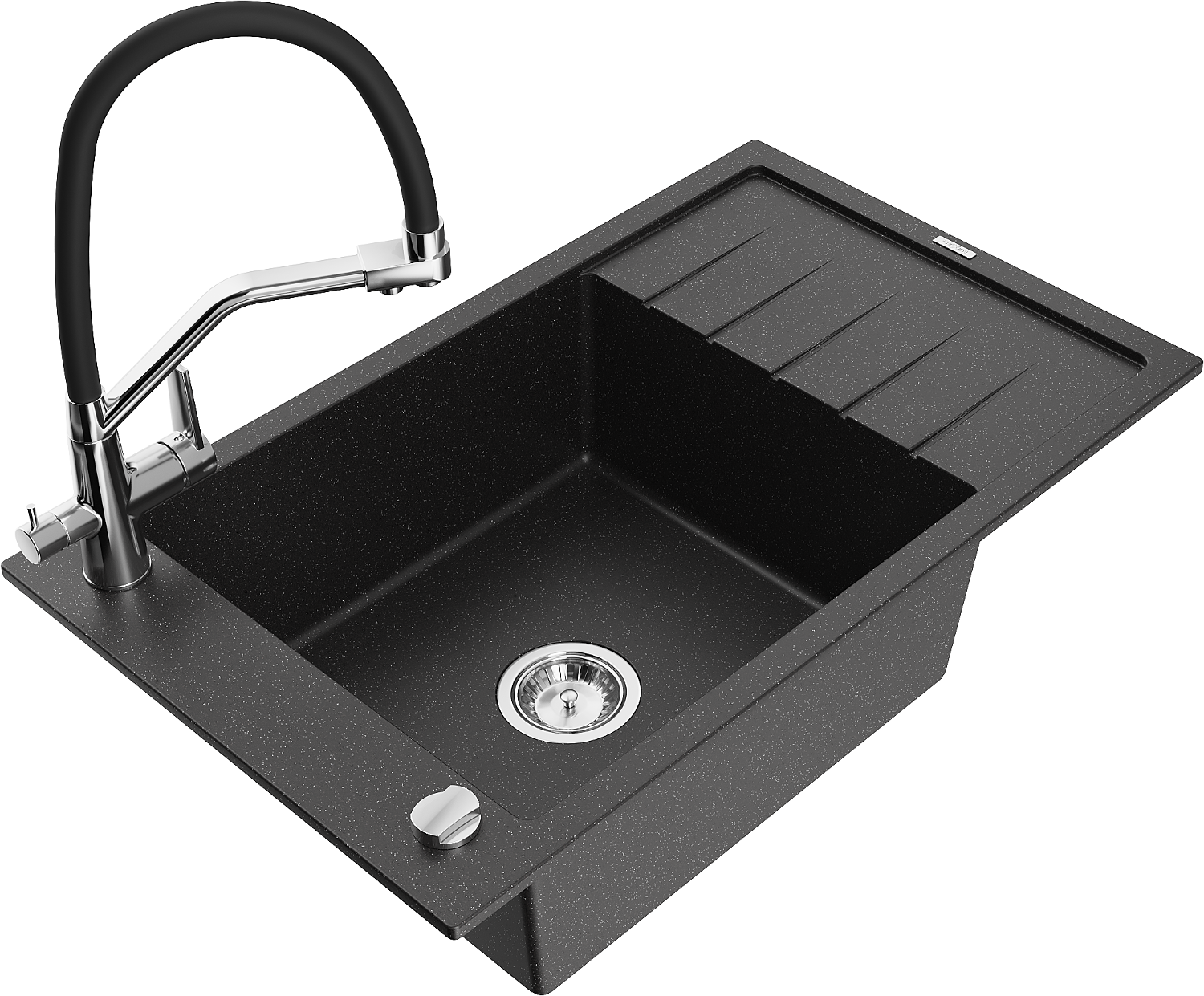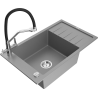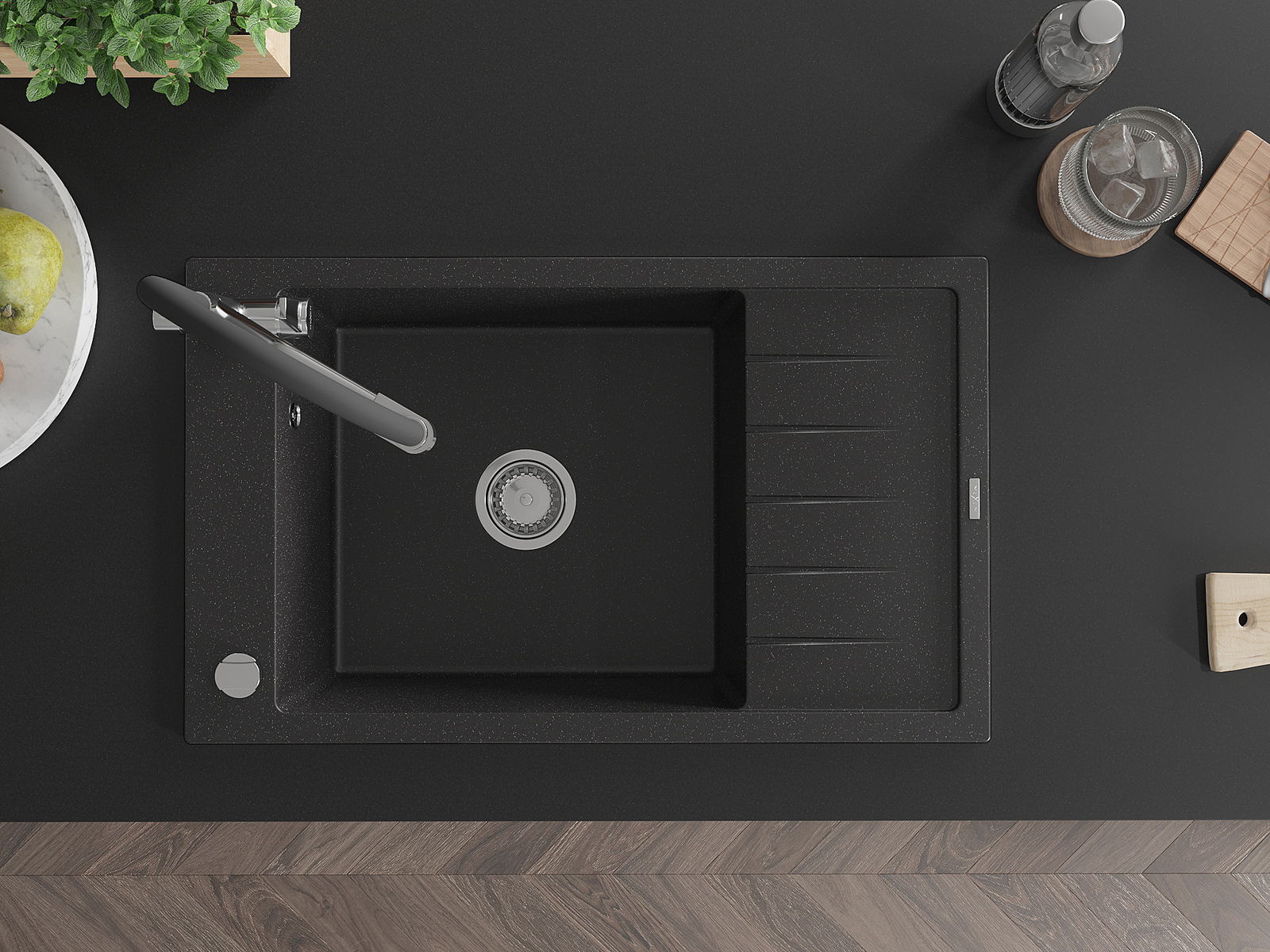 Mexen Elias Évier en granit 1 bac avec égouttoir et robinet de cuisine Duo, noir/argent métallique - 6511-73-671701-07