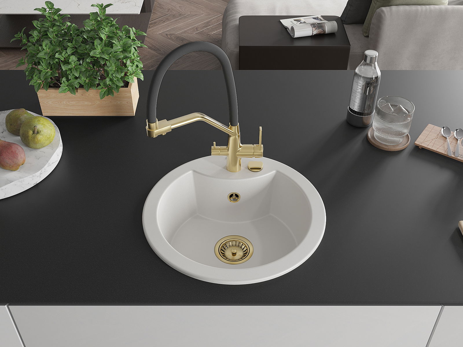 L'évier est fabriqué en granit de haute qualité. Il constitue un complément élégant et surtout pratique pour toute cuisine, quel que soit son style. La qualité et la durabilité du granit garantissent de nombreuses années d'utilisation.