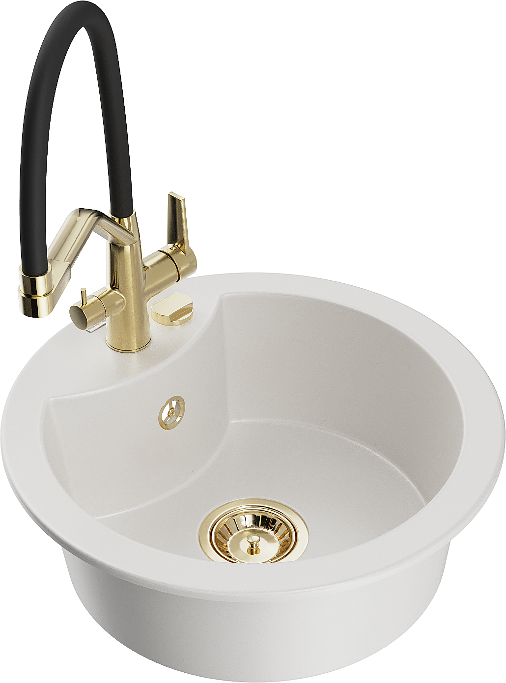 Mexen Diego évier en granit 1 bac avec robinet de cuisine Duo, blanc - 6512-20-671701-57-G
