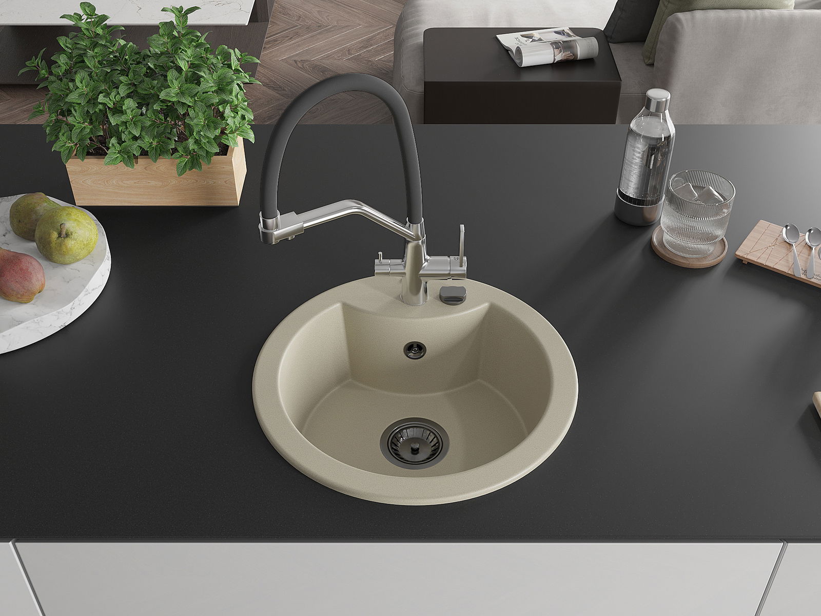 L'évier est fabriqué en granit de haute qualité. Il constitue un complément élégant et surtout pratique pour toute cuisine, quel que soit son style. La qualité et la durabilité du granit garantissent de nombreuses années d'utilisation.