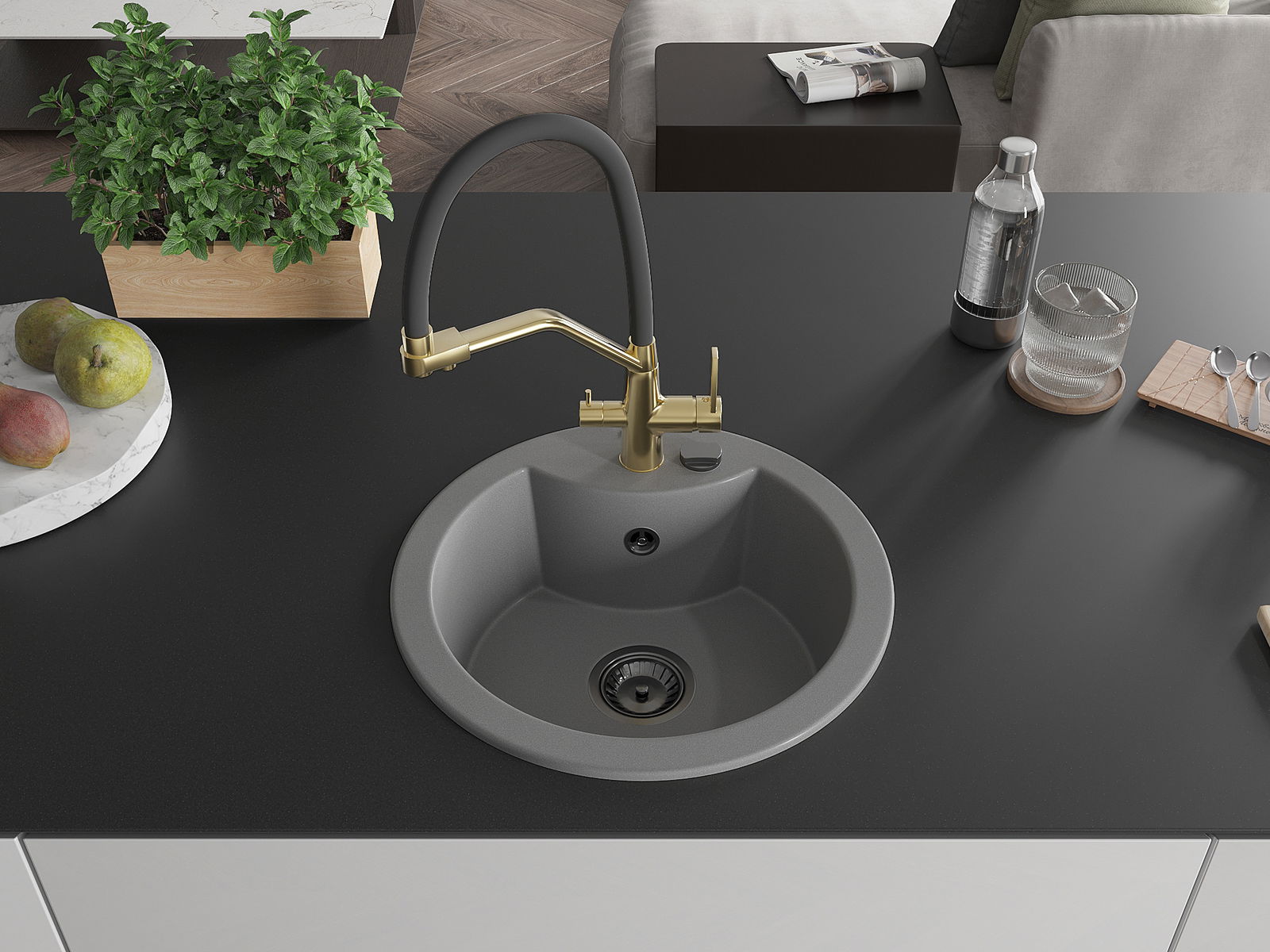 L'évier est fabriqué en granit de haute qualité. Il constitue un complément élégant et surtout pratique pour toute cuisine, quel que soit son style. La qualité et la durabilité du granit garantissent de nombreuses années d'utilisation.