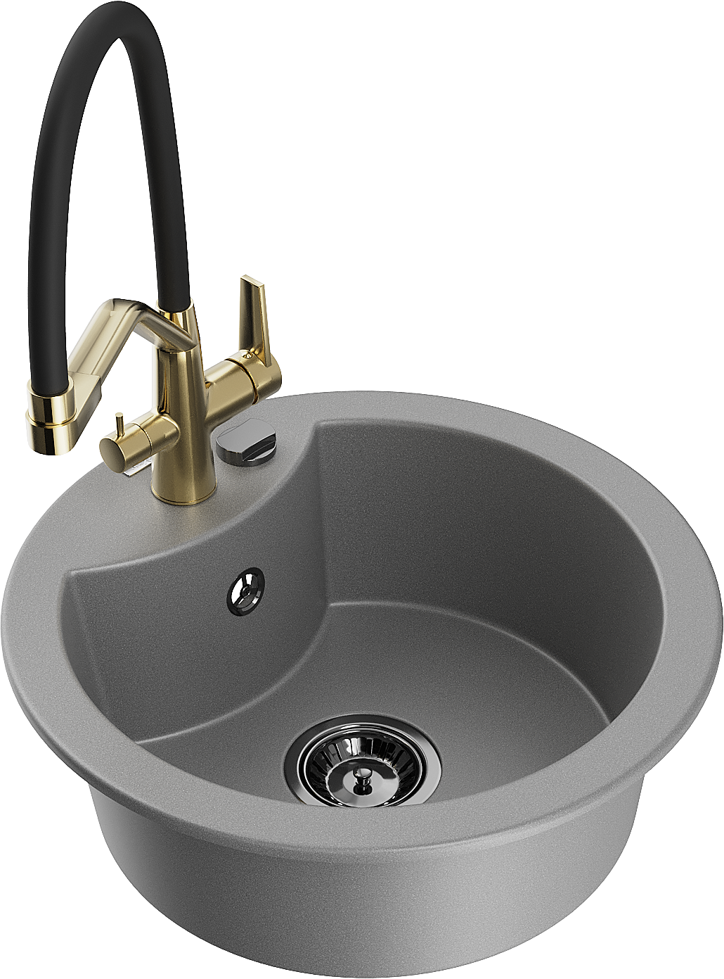 Mexen Diego évier de cuisine en granit 1 bac avec robinet de cuisine Duo, gris - 6512-71-671701-57-B