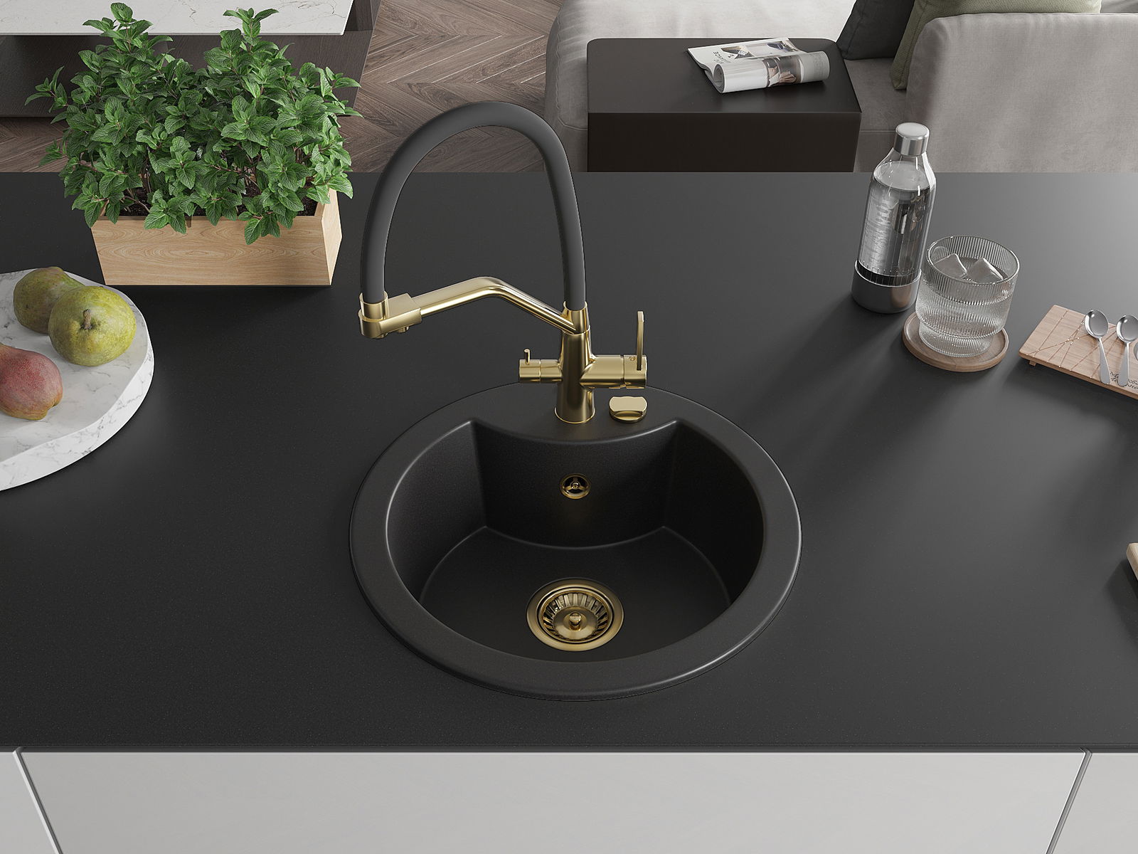 L'évier est fabriqué en granit de haute qualité. Il constitue un complément élégant et surtout pratique pour toute cuisine, quel que soit son style. La qualité et la durabilité du granit garantissent de nombreuses années d'utilisation.