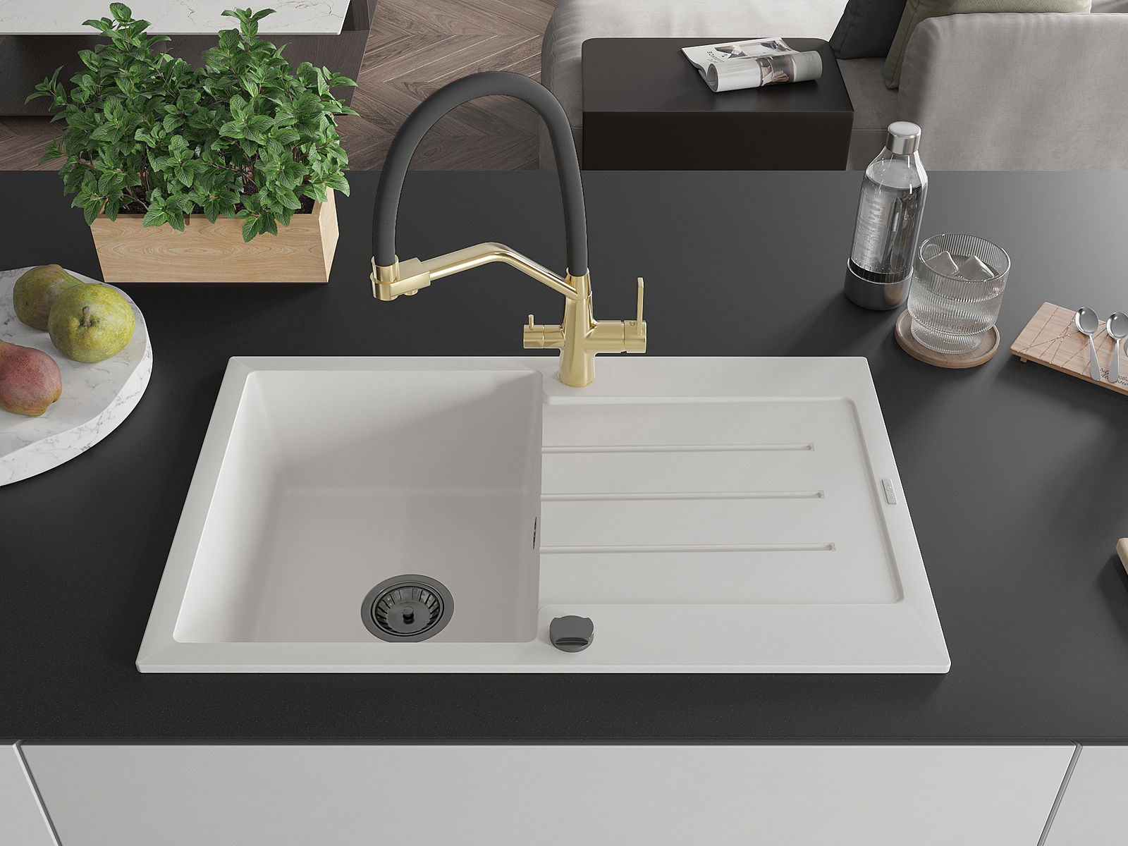 L'évier est fabriqué en granit de haute qualité. Il constitue un complément élégant et surtout pratique pour toute cuisine, quel que soit son style. La qualité et la durabilité du granit garantissent de nombreuses années d'utilisation.