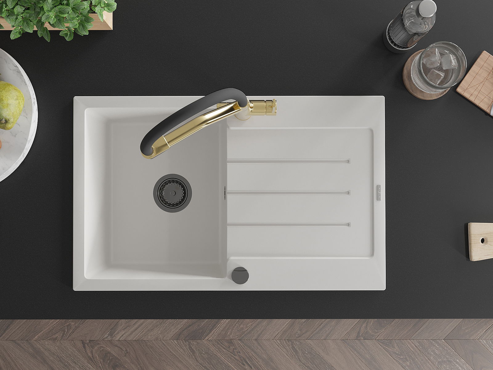 La surface de l'évier est très bien trempée et se distingue par une résistance exceptionnelle aux dommages mécaniques et aux rayures. Ce matériau durable vous permettra de profiter de son bel aspect pendant de nombreuses années.