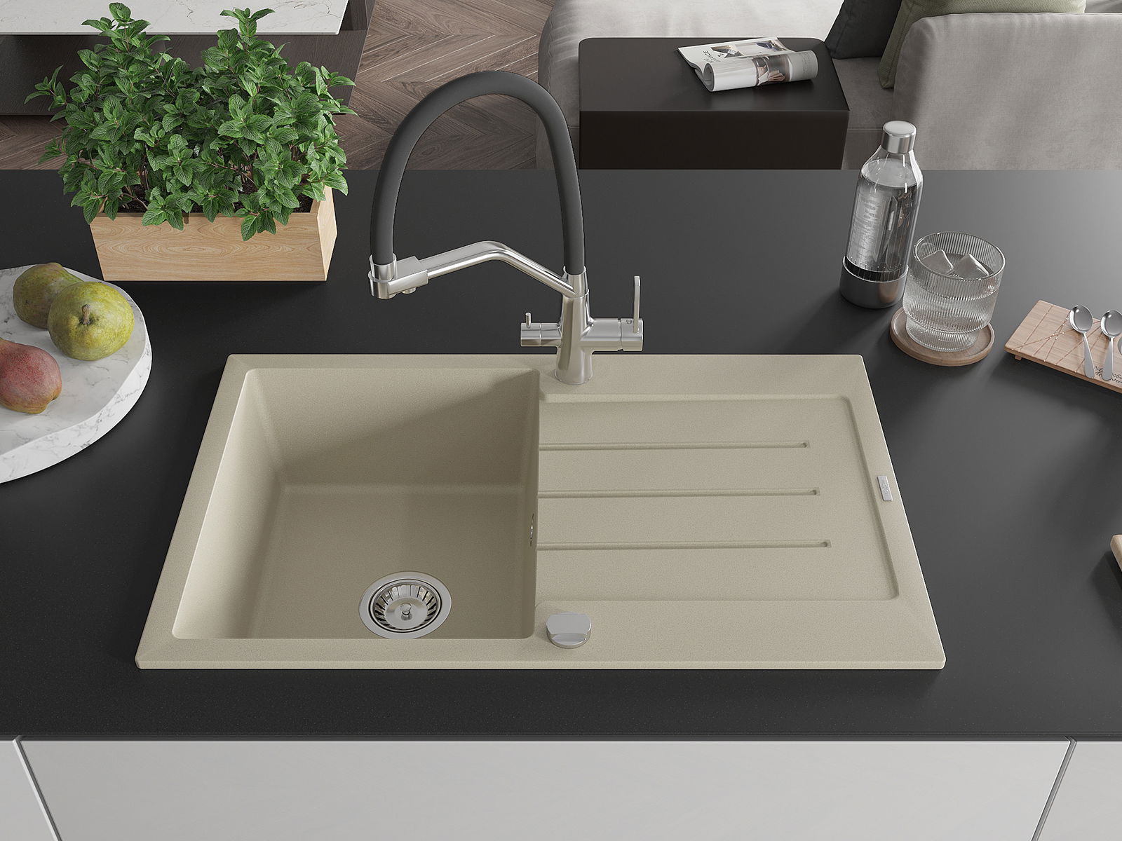 L'évier est fabriqué en granit de haute qualité. Il constitue un complément élégant et surtout pratique pour toute cuisine, quel que soit son style. La qualité et la durabilité du granit garantissent de nombreuses années d'utilisation.