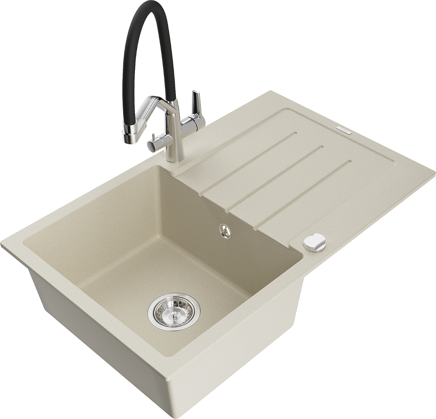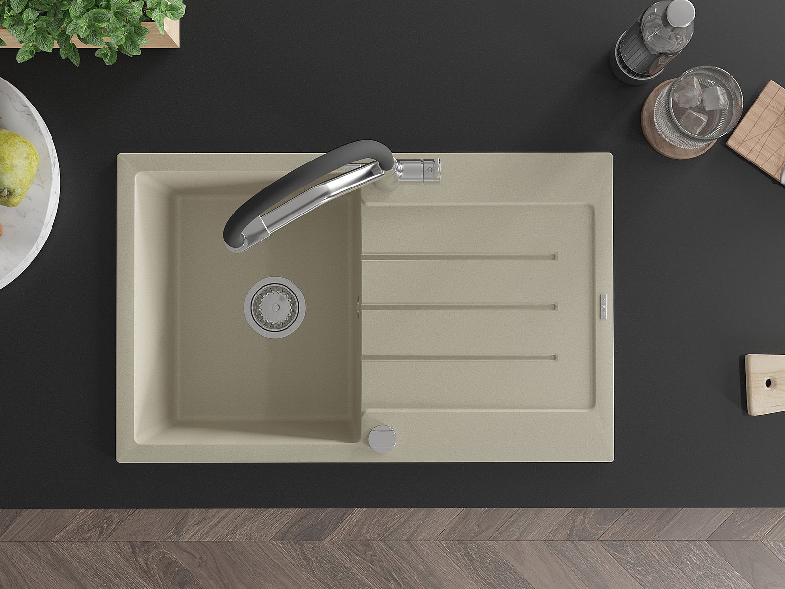 Mexen Bruno évier en granit 1 bac avec égouttoir et mitigeur cuisine Duo, beige - 6513-69-671701-07