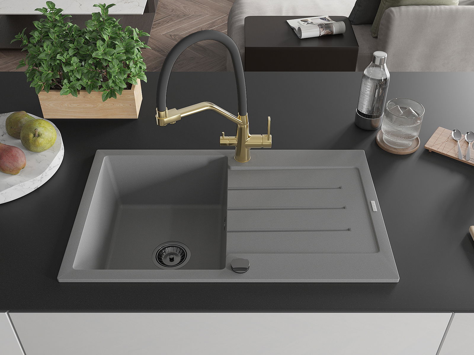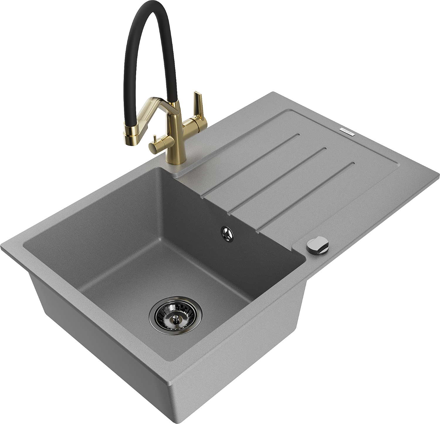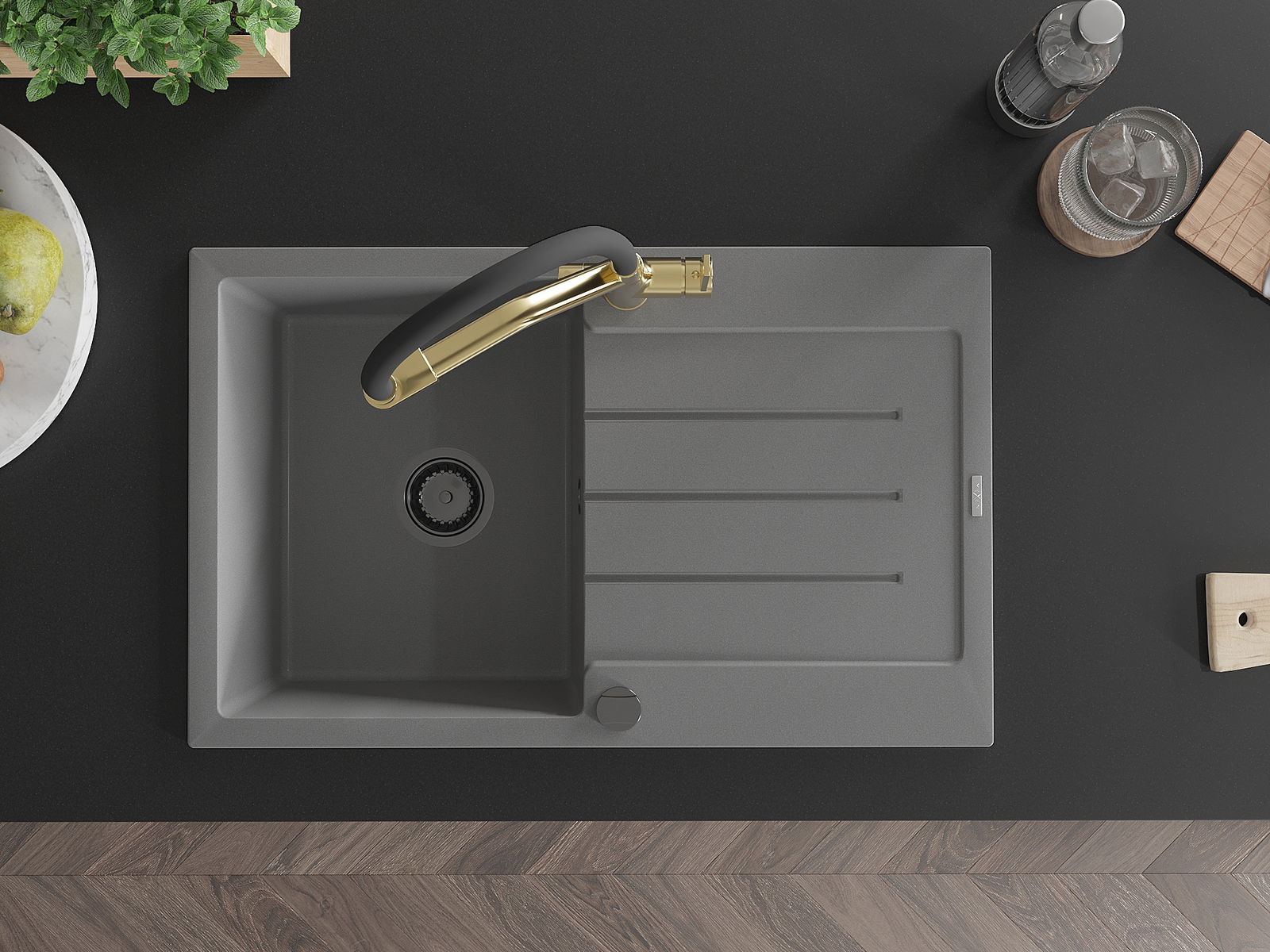 Mexen Bruno évier en granit 1 bac avec égouttoir et robinet de cuisine Duo, gris - 6513-71-671701-57-B