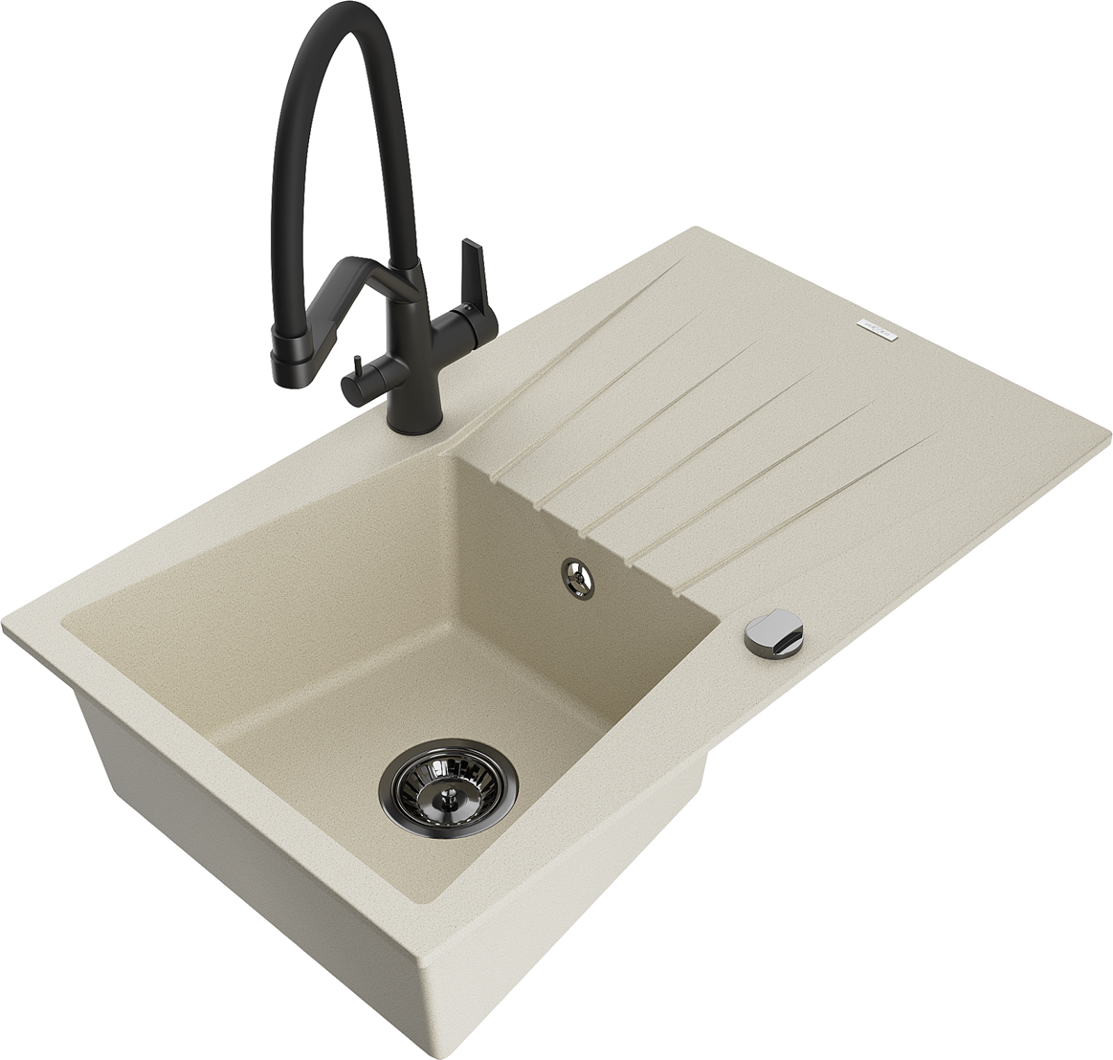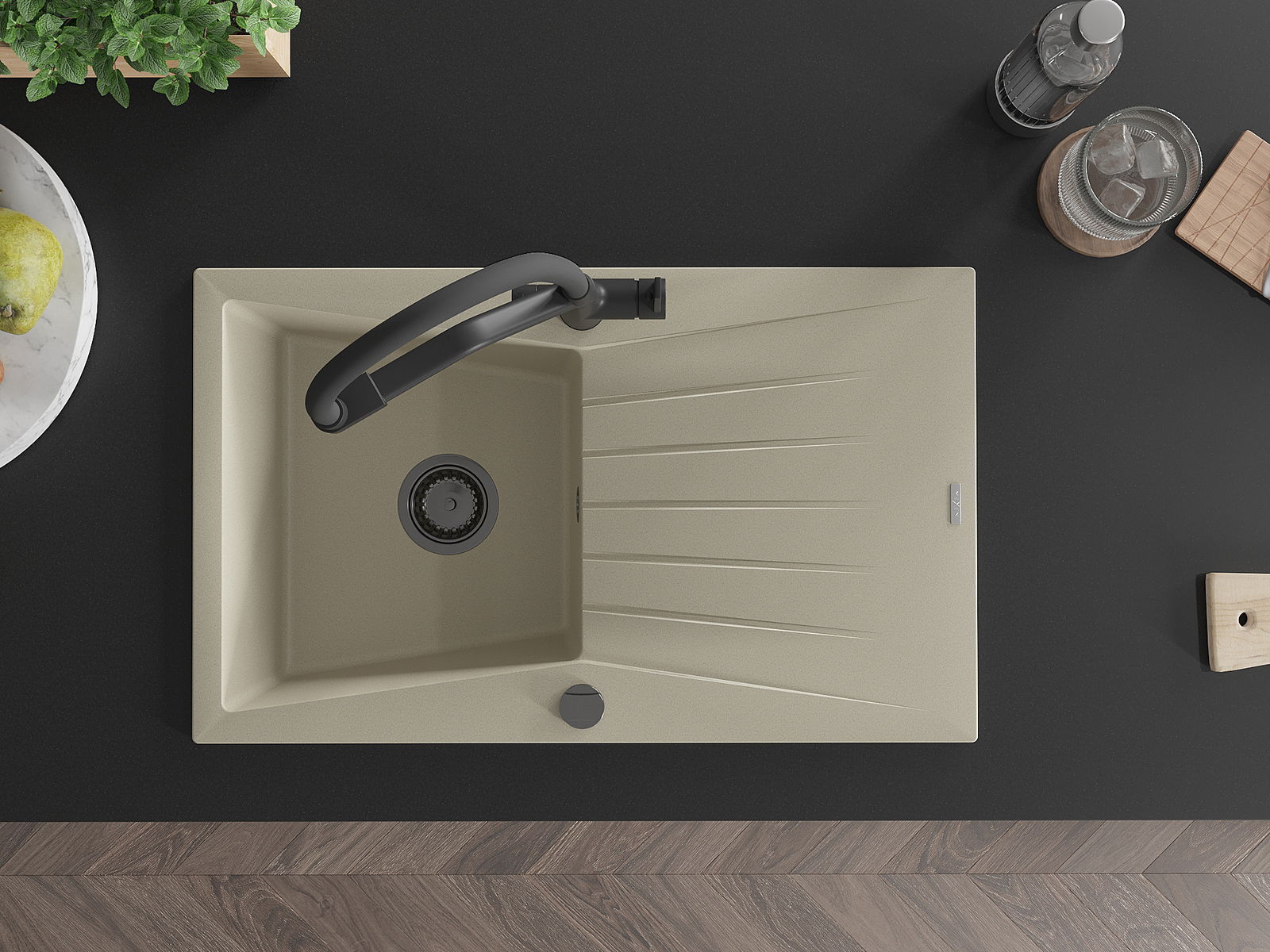 Mexen Cesar évier en granit 1 bac avec égouttoir et robinet de cuisine Duo, beige - 6514-69-671701-70-B
