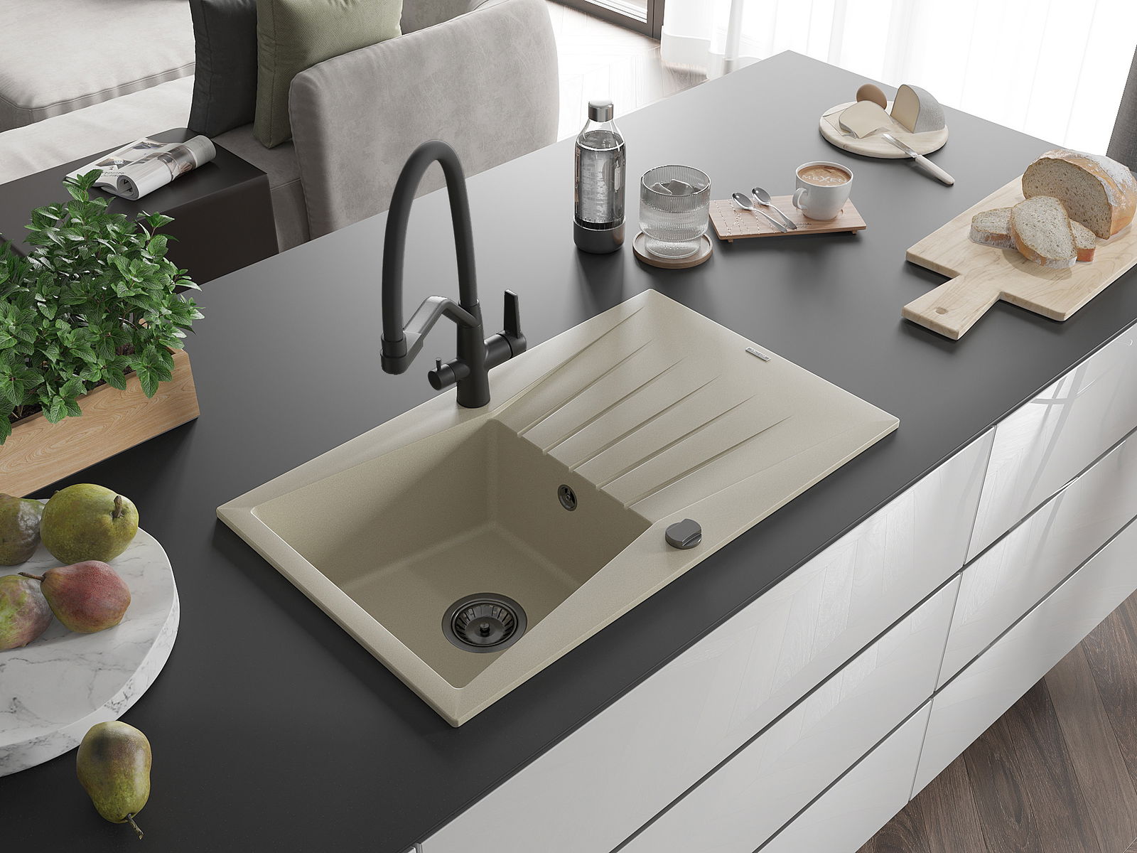 L'évier est fabriqué en granit de haute qualité. Il constitue un complément élégant et surtout pratique pour toute cuisine, quel que soit son style. La qualité et la durabilité du granit garantissent de nombreuses années d'utilisation.