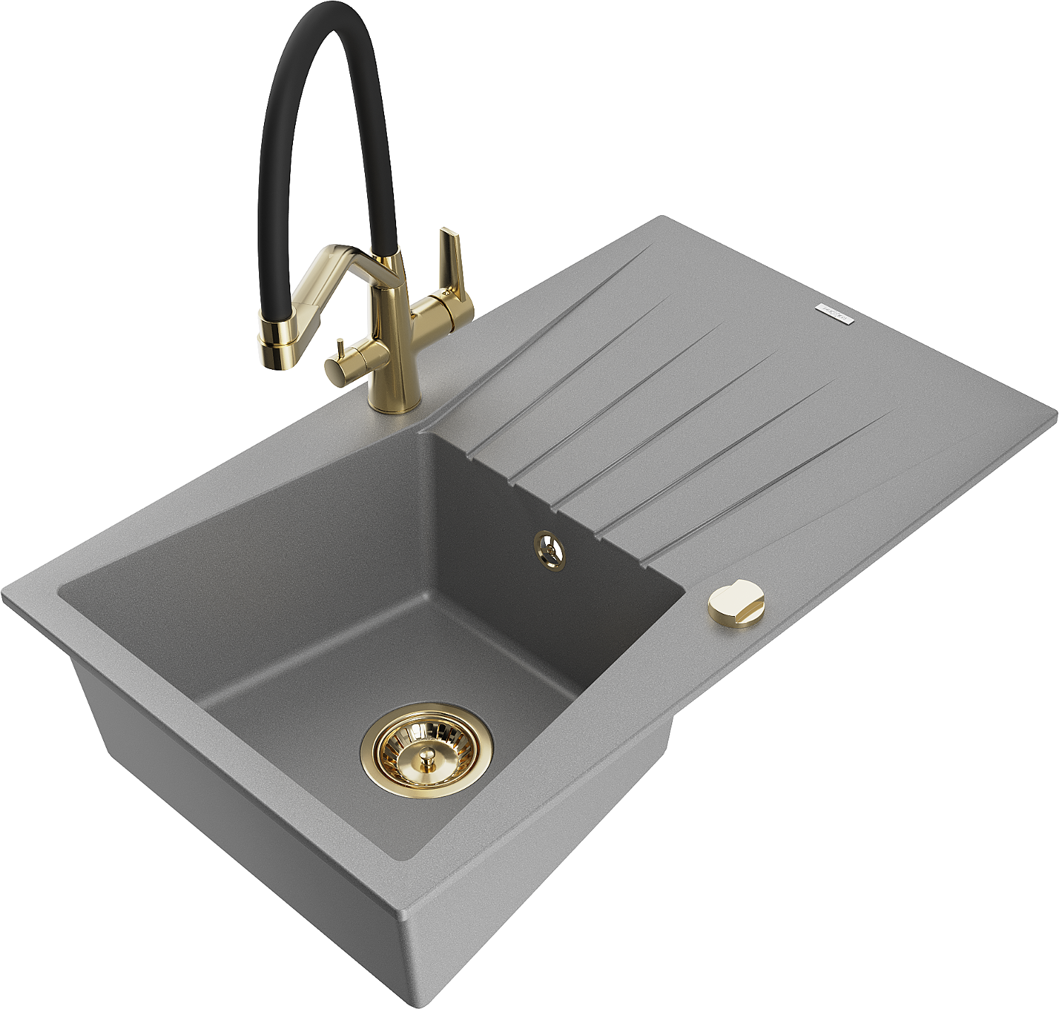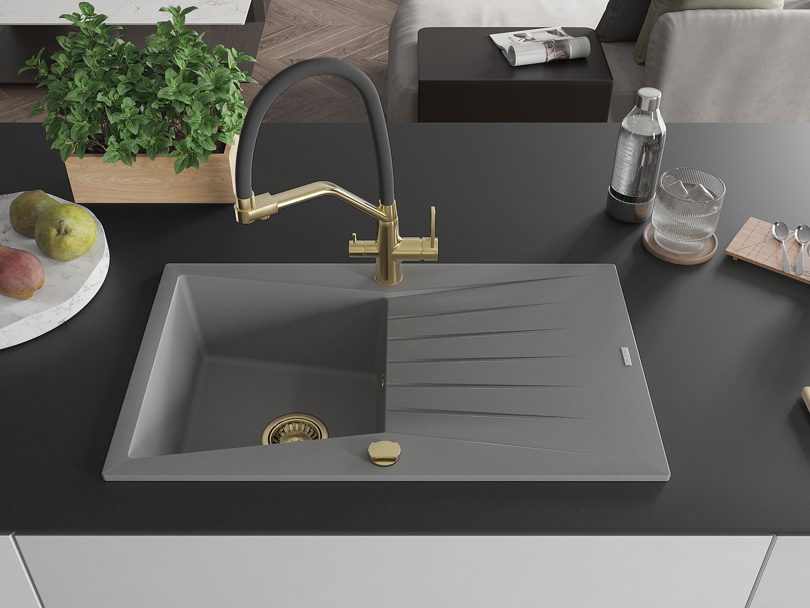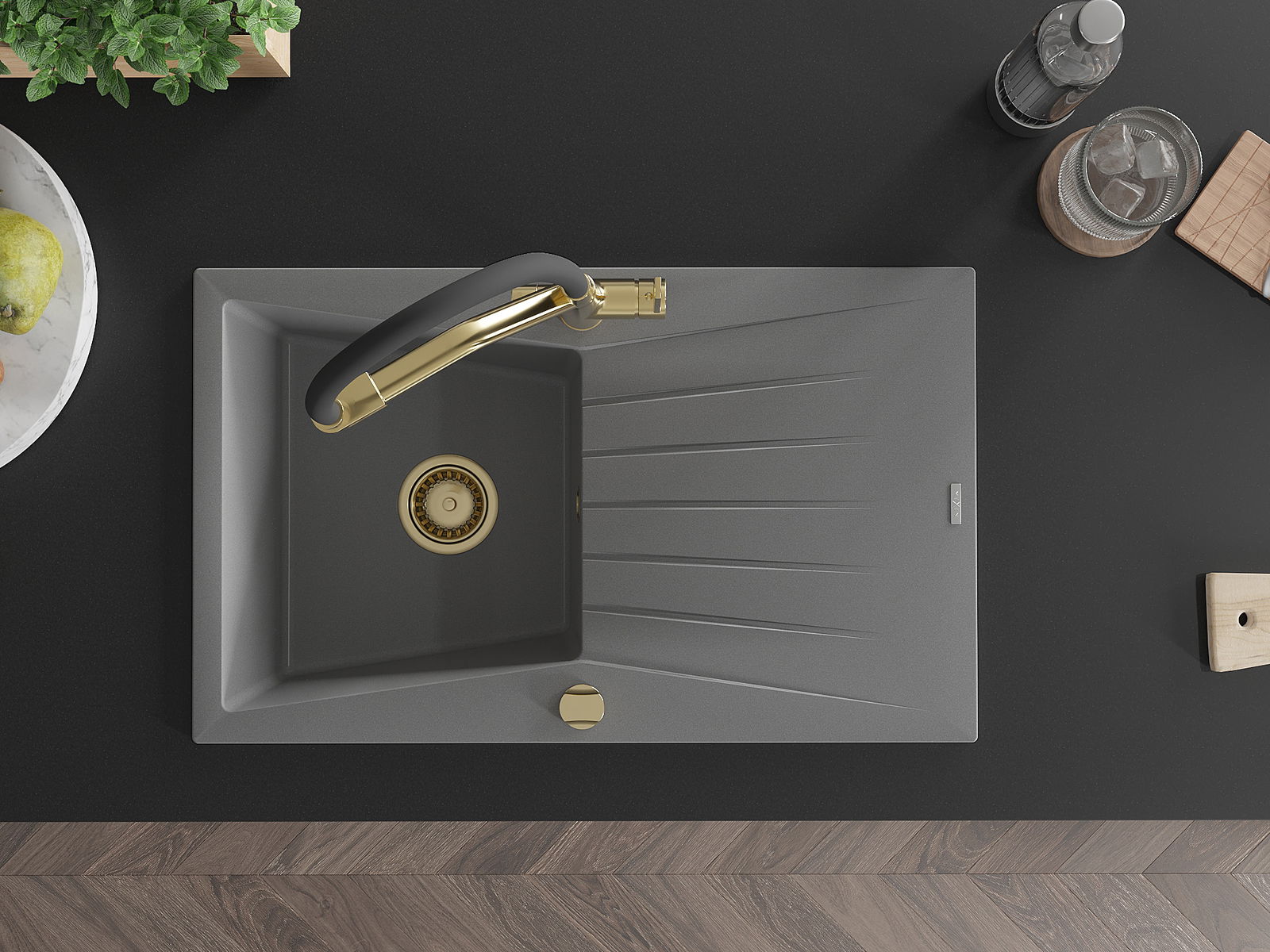 Mexen Cesar évier en granit 1 bac avec égouttoir et robinet de cuisine Duo, gris - 6514-71-671701-57-G
