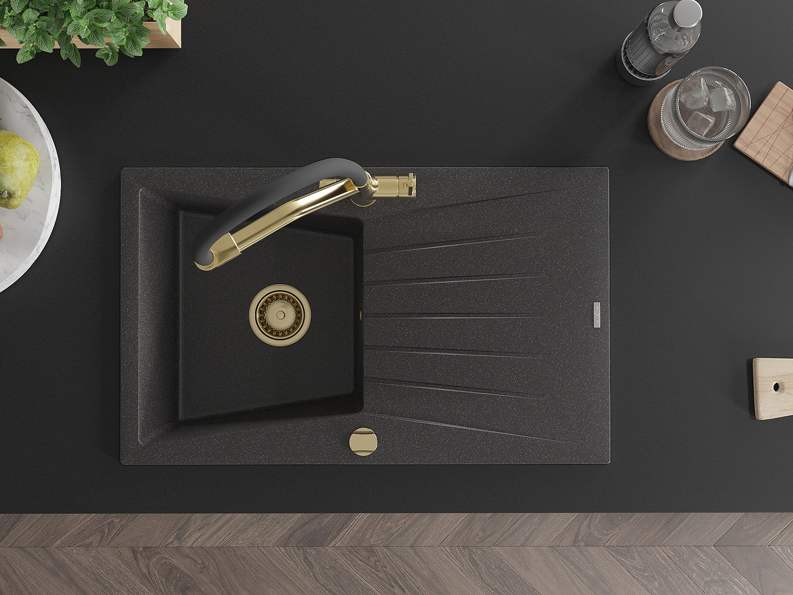 L'évier est fabriqué en granit de haute qualité. Il constitue un complément élégant et surtout pratique pour toute cuisine, quel que soit son style. La qualité et la durabilité du granit garantissent de nombreuses années d'utilisation.