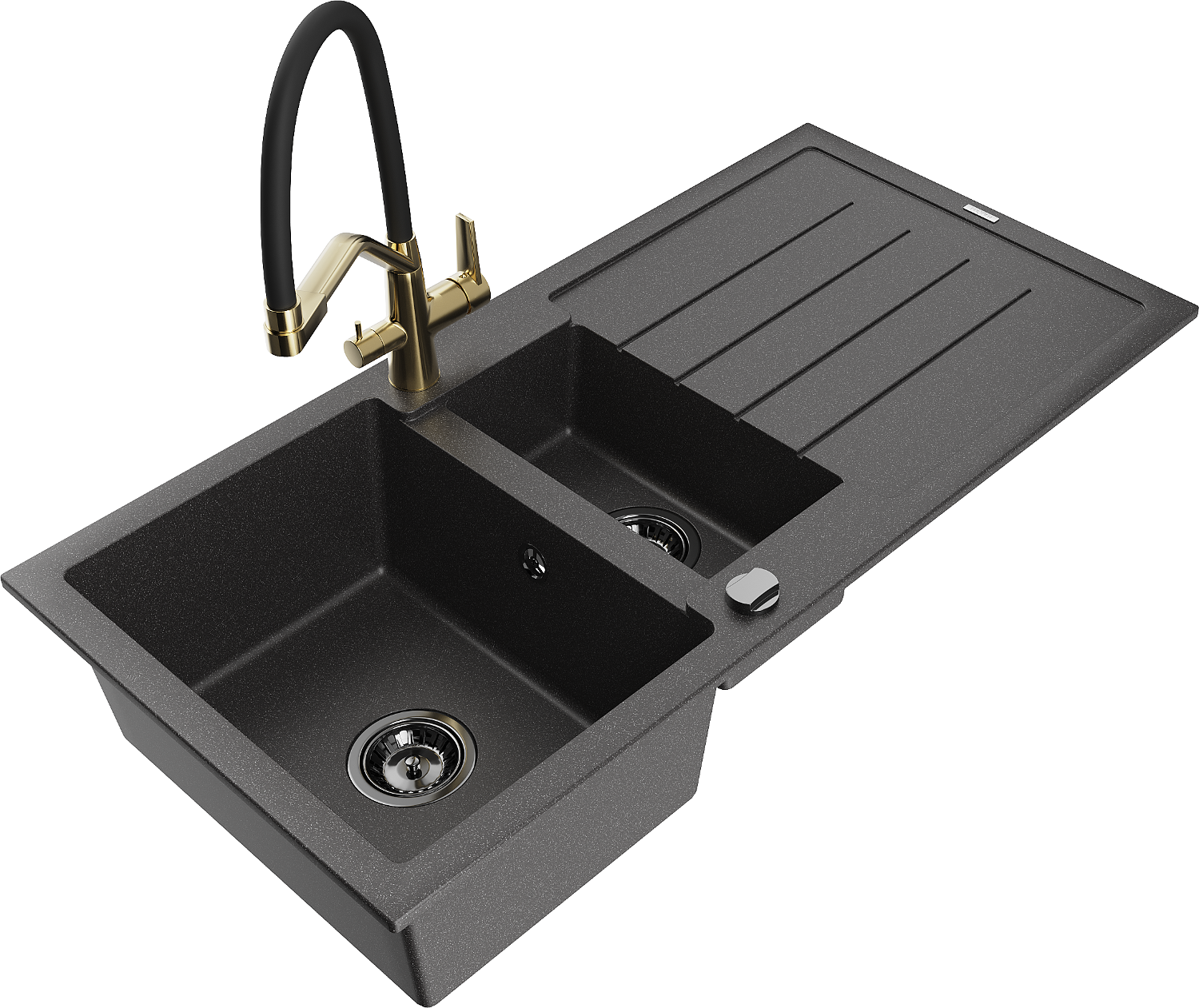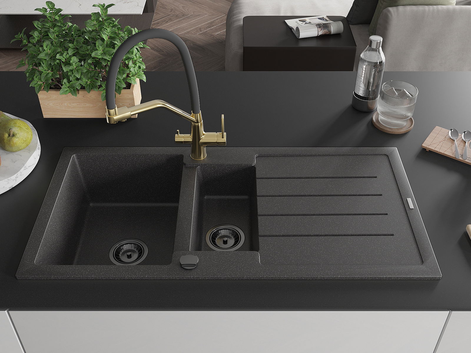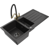 Mexen Andres évier en granit 1,5 bac avec égouttoir et robinet de cuisine Duo, noir moucheté - 6515-76-671701-57-B