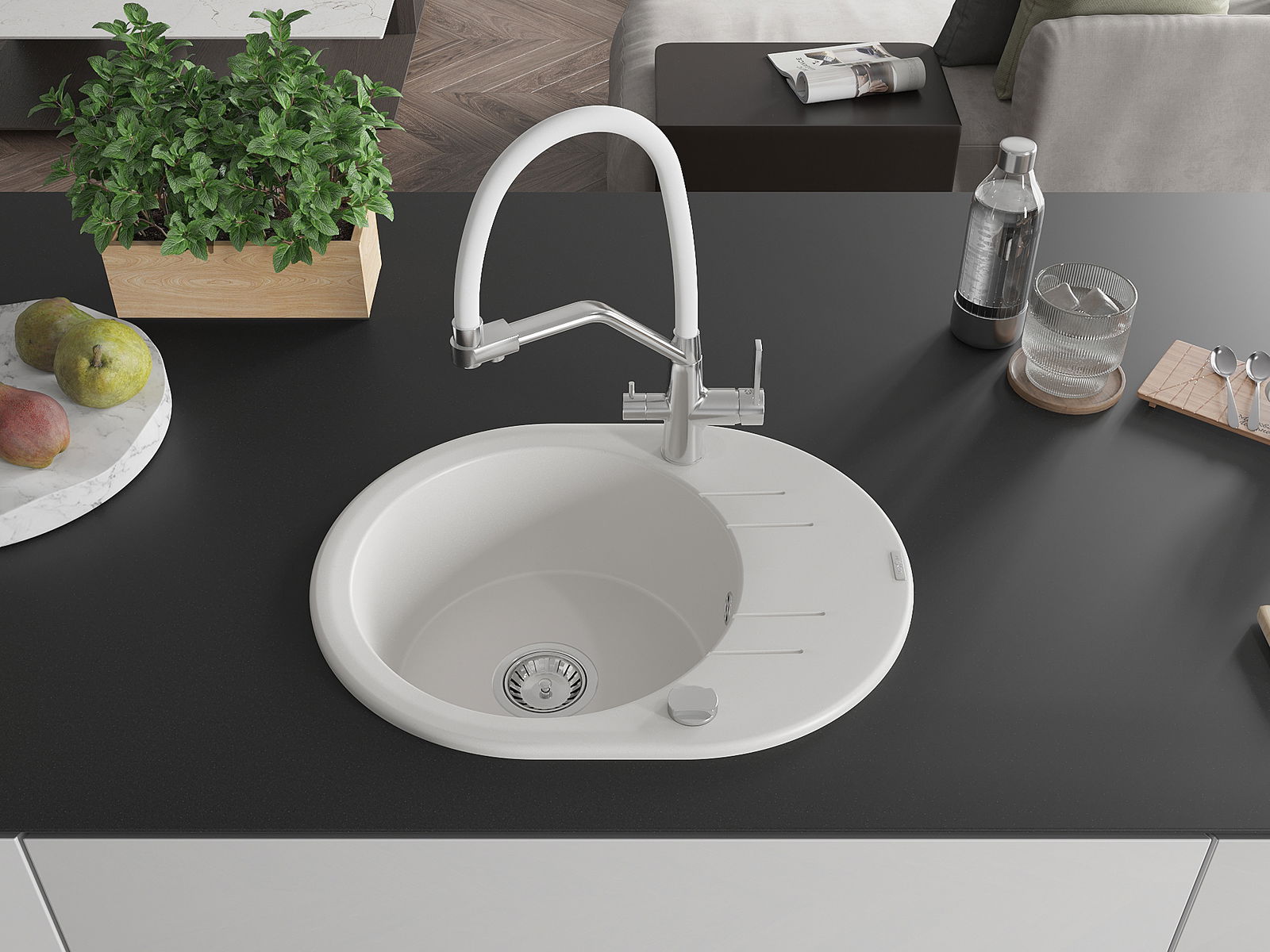 L'évier est fabriqué en granit de haute qualité. Il constitue un complément élégant et surtout pratique pour toute cuisine, quel que soit son style. La qualité et la durabilité du granit garantissent de nombreuses années d'utilisation.