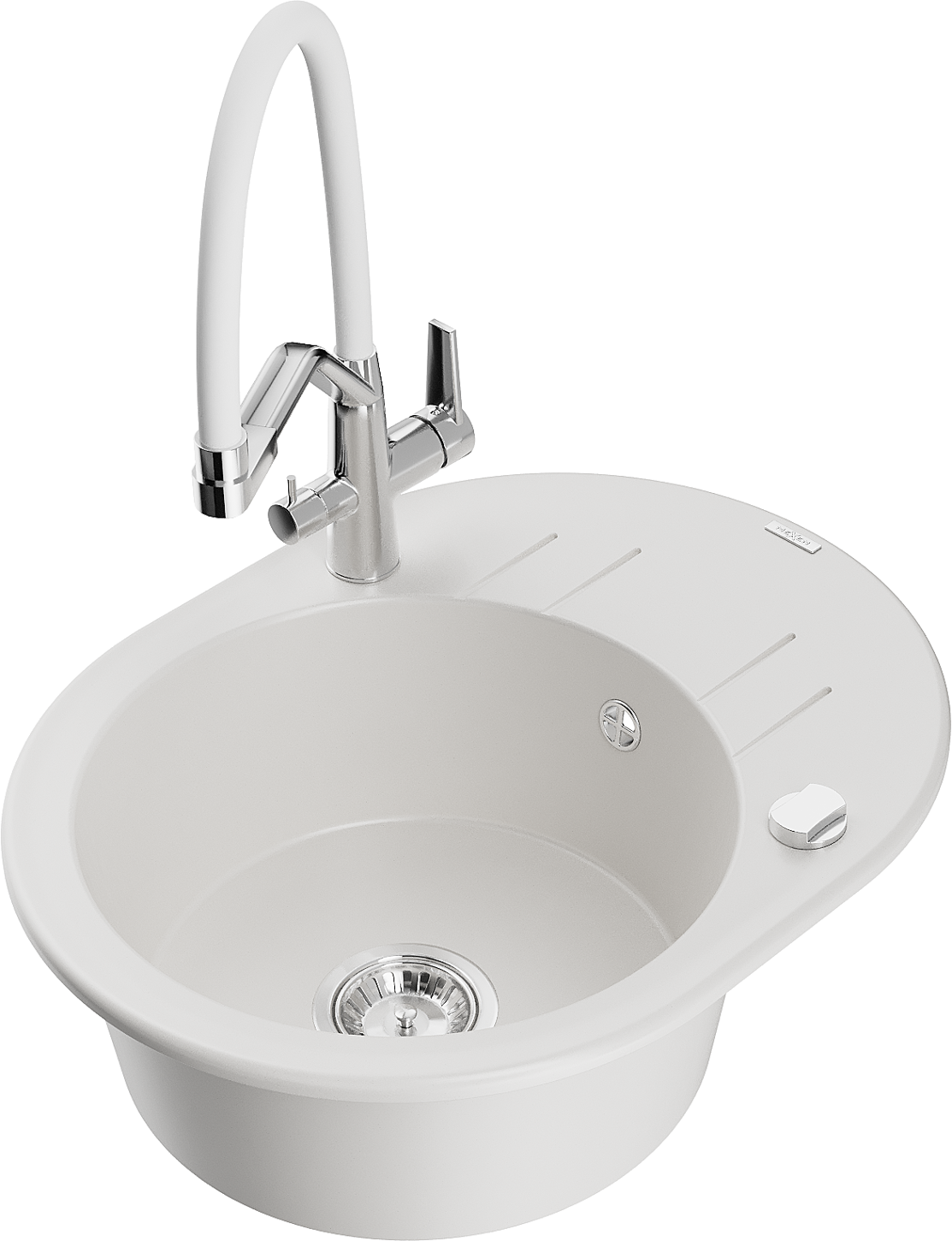 Mexen Kevin évier en granit 1-bac avec robinet de cuisine Duo, blanc - 6517-20-671701-02