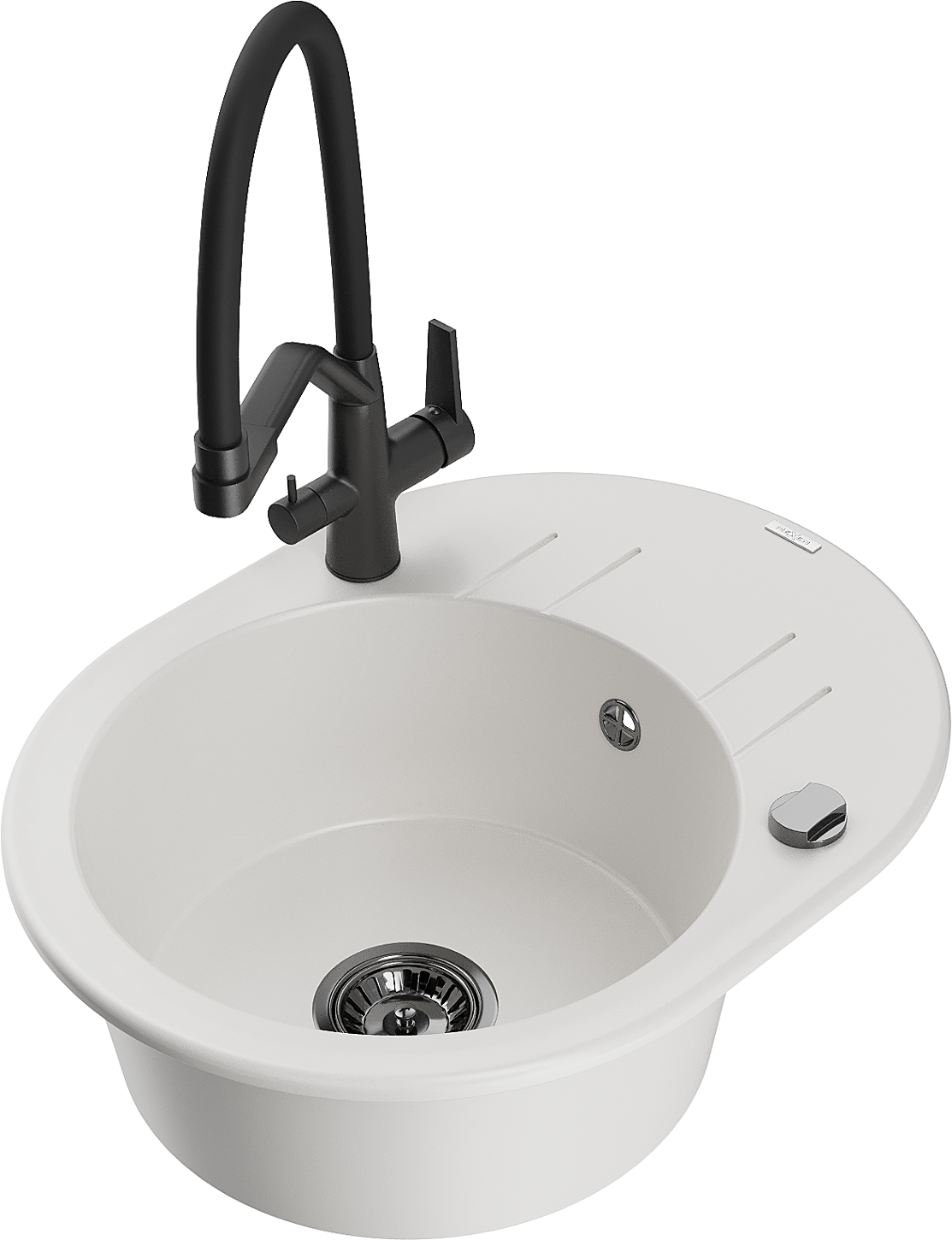 Mexen Kevin évier de cuisine en granit à 1 bac avec robinet Duo, blanc - 6517-20-671701-70-B