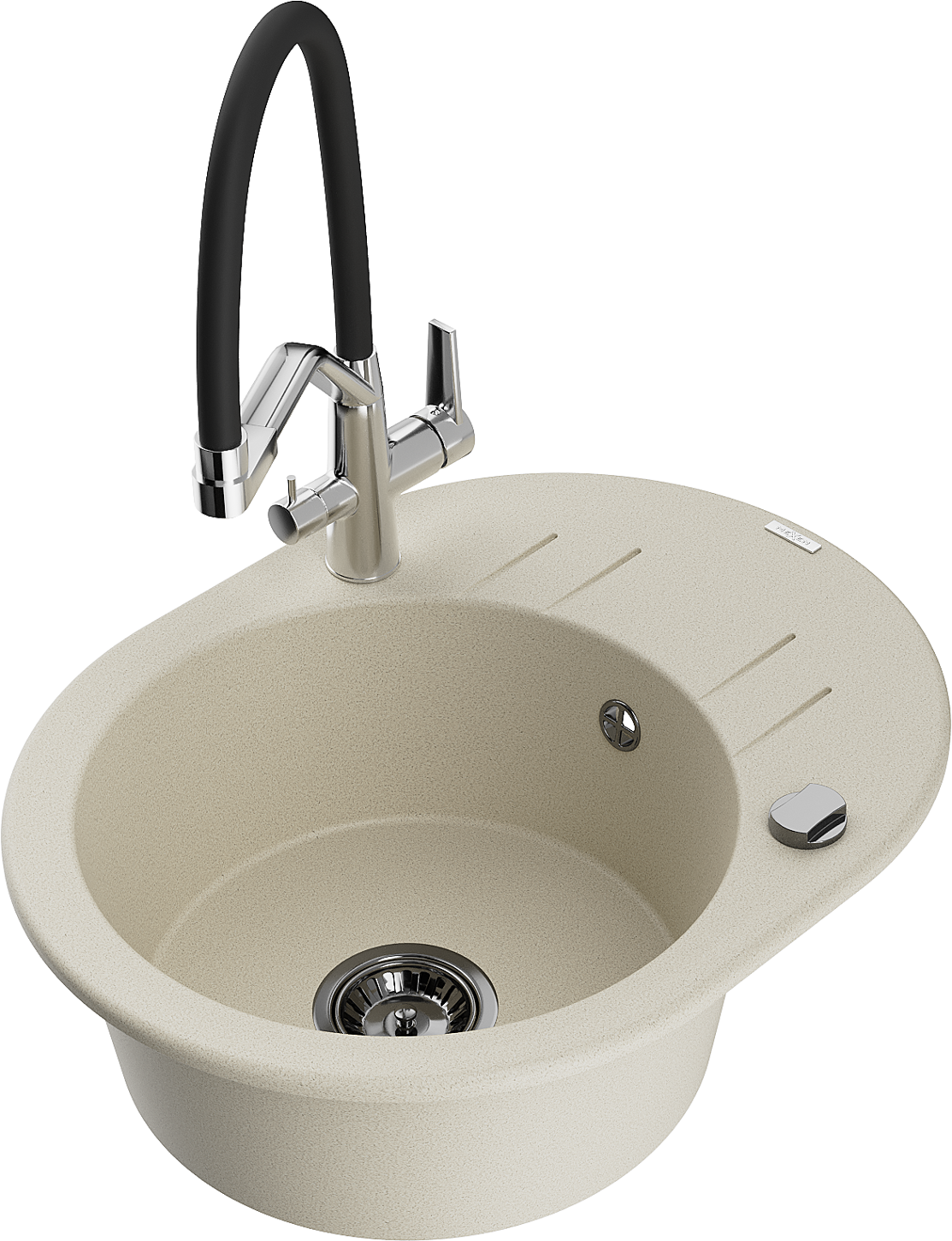 Mexen Kevin évier en granit à 1 bac avec robinet de cuisine Duo, beige - 6517-69-671701-07-B