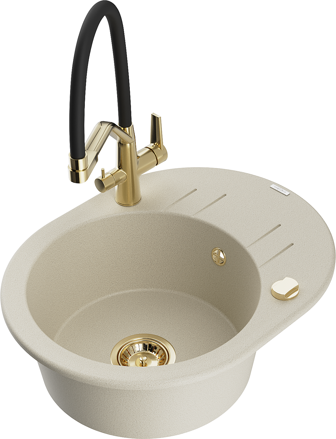 Mexen Kevin évier de cuisine en granit 1 bac avec robinet Duo, beige - 6517-69-671701-57-G