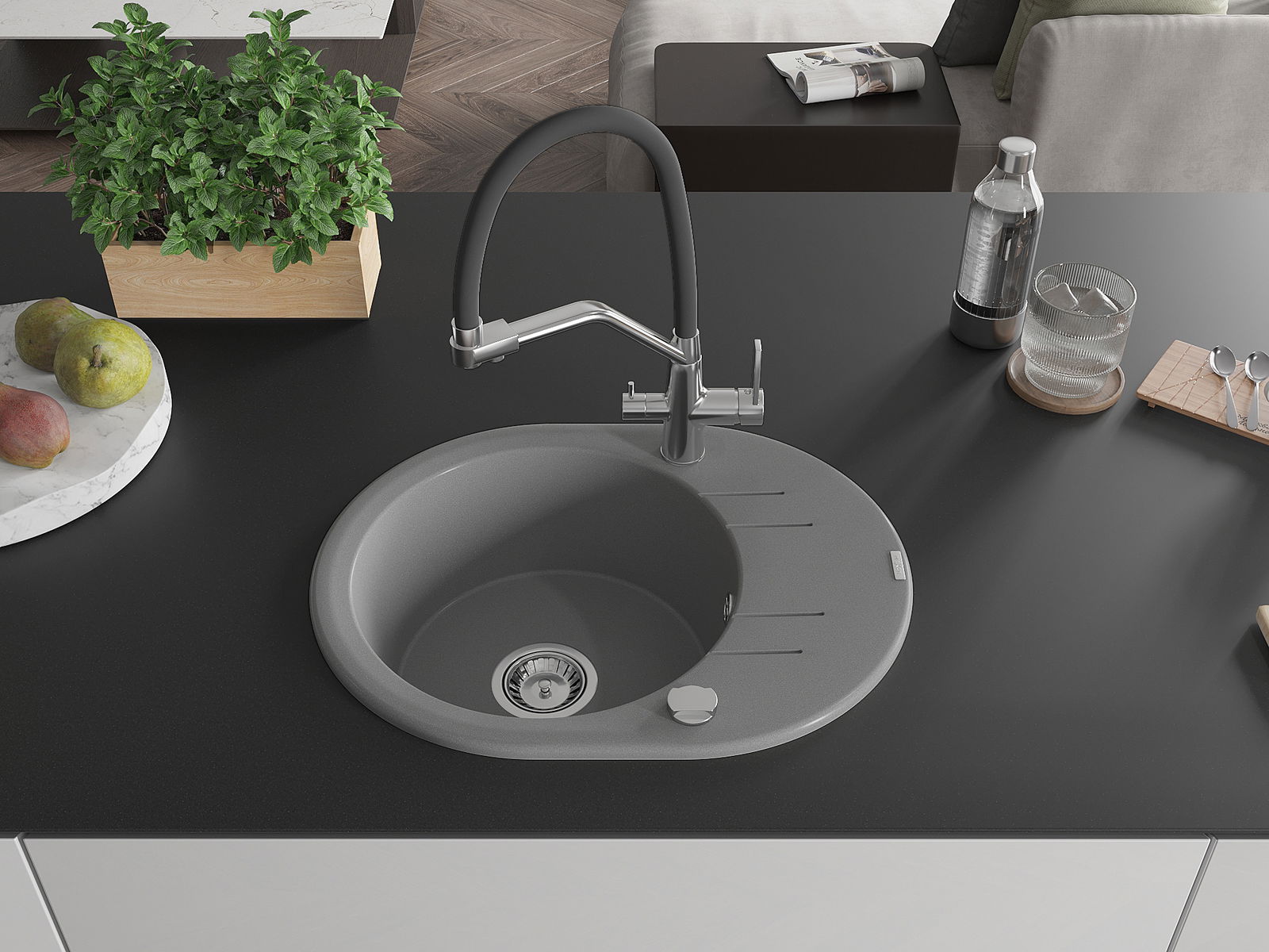L'évier est fabriqué en granit de haute qualité. Il constitue un complément élégant et surtout pratique pour toute cuisine, quel que soit son style. La qualité et la durabilité du granit garantissent de nombreuses années d'utilisation.