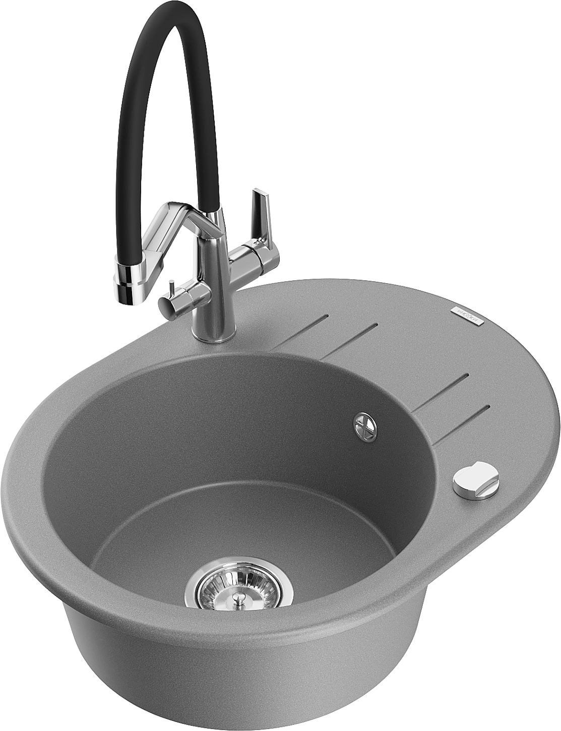 Mexen Kevin évier en granit 1 cuve avec robinet de cuisine Duo, gris - 6517-71-671701-07