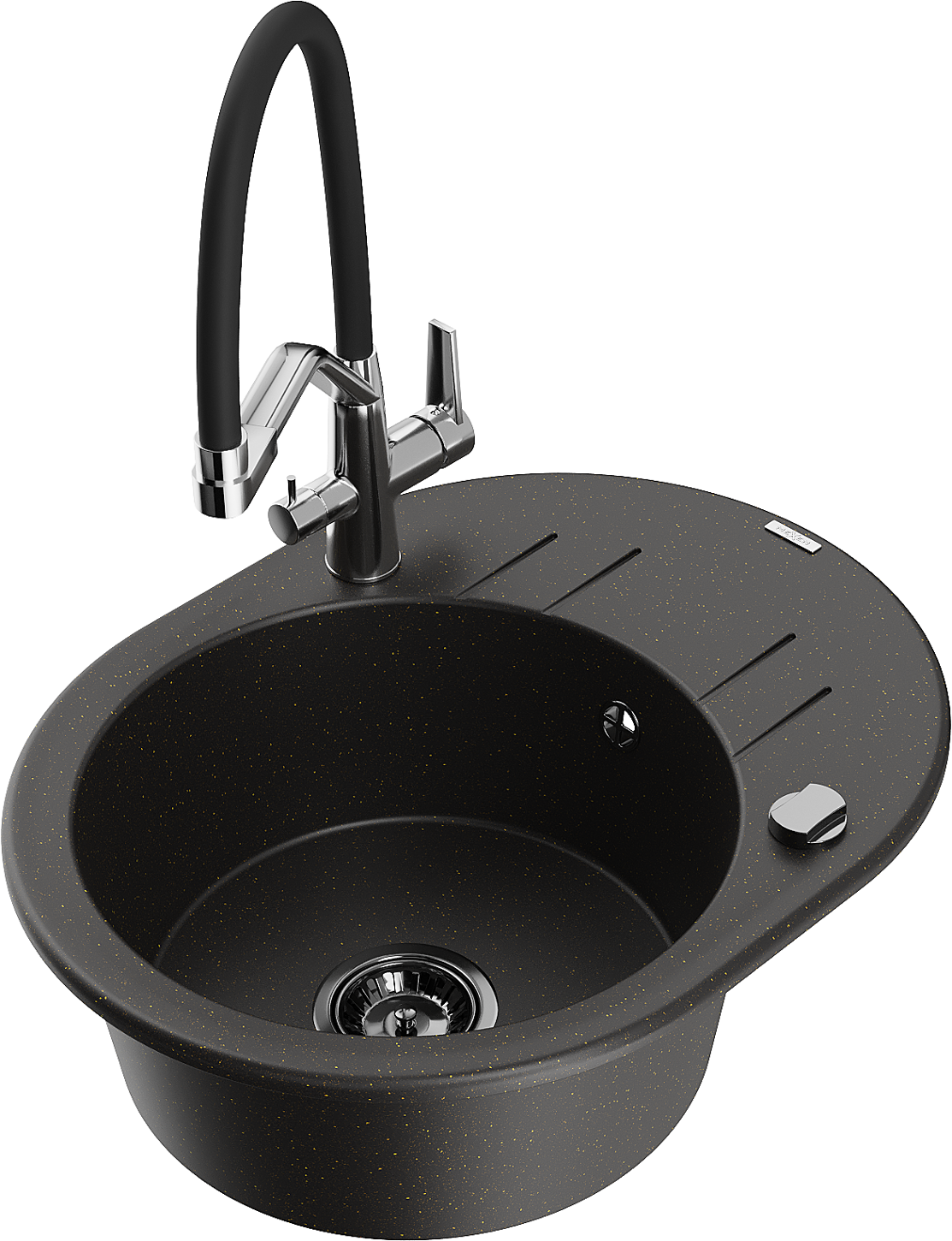 Mexen Kevin évier en granit à 1 bac avec mitigeur de cuisine Duo, noir/or métallique - 6517-75-671701-07-B