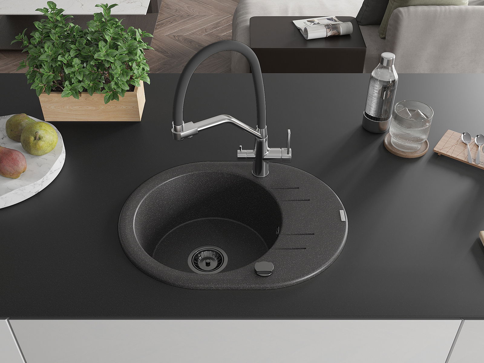 L'évier est fabriqué en granit de haute qualité. Il constitue un complément élégant et surtout pratique pour toute cuisine, quel que soit son style. La qualité et la durabilité du granit garantissent de nombreuses années d'utilisation.