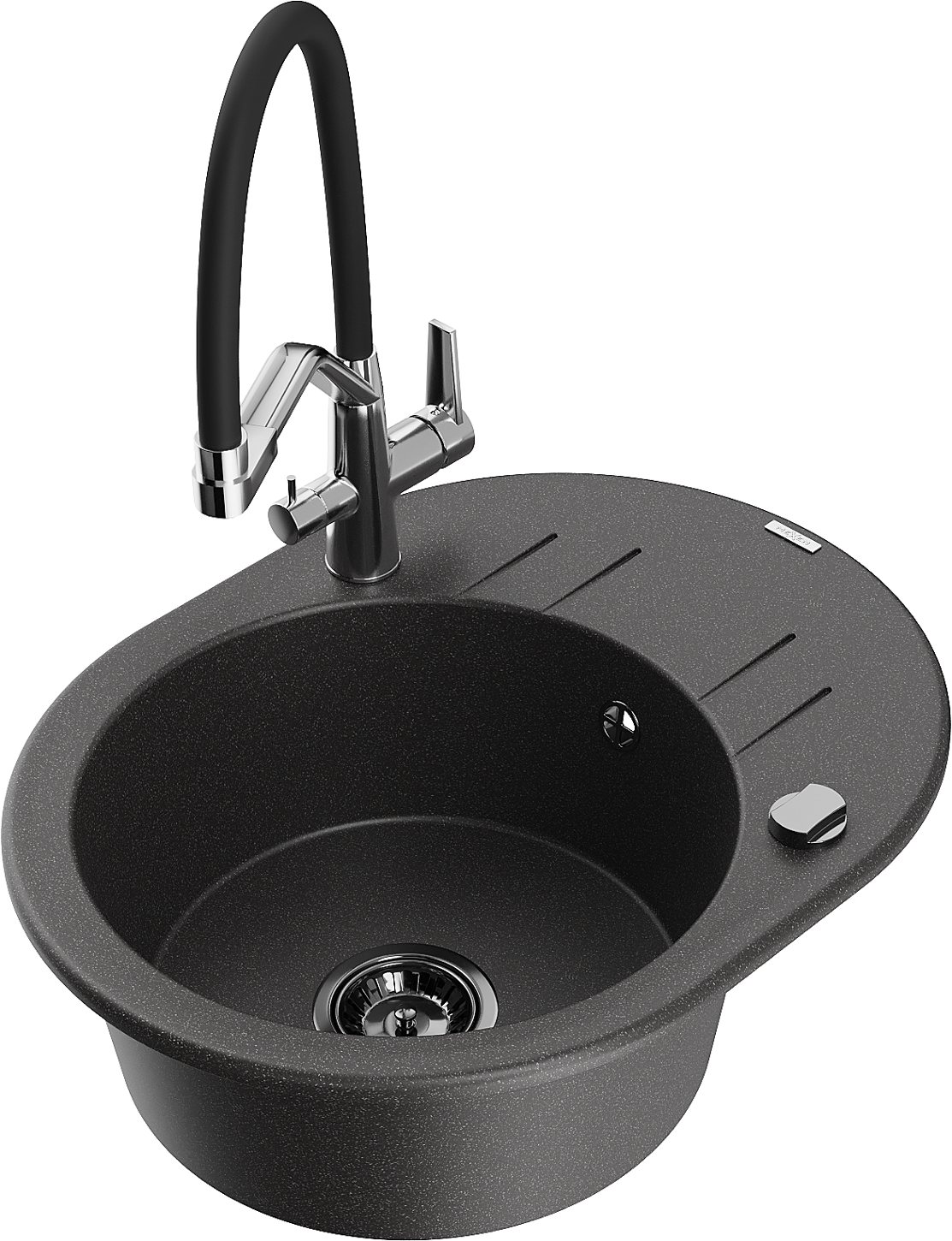 Mexen Kevin évier en granit 1 bac avec robinet de cuisine Duo, noir moucheté - 6517-76-671701-07-B