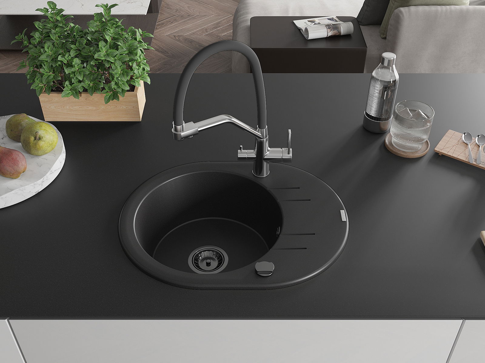 Mexen Kevin évier en granit à 1 bac avec robinet de cuisine Duo, noir - 6517-77-671701-07-B