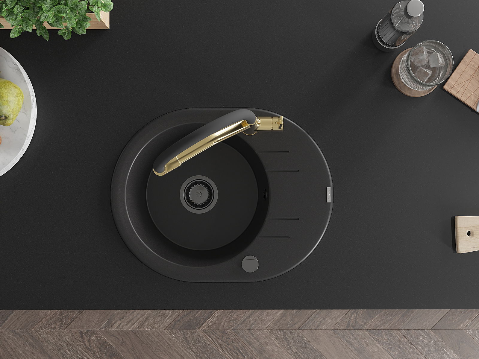 L'évier est fabriqué en granit de haute qualité. Il constitue un complément élégant et surtout pratique pour toute cuisine, quel que soit son style. La qualité et la durabilité du granit garantissent de nombreuses années d'utilisation.