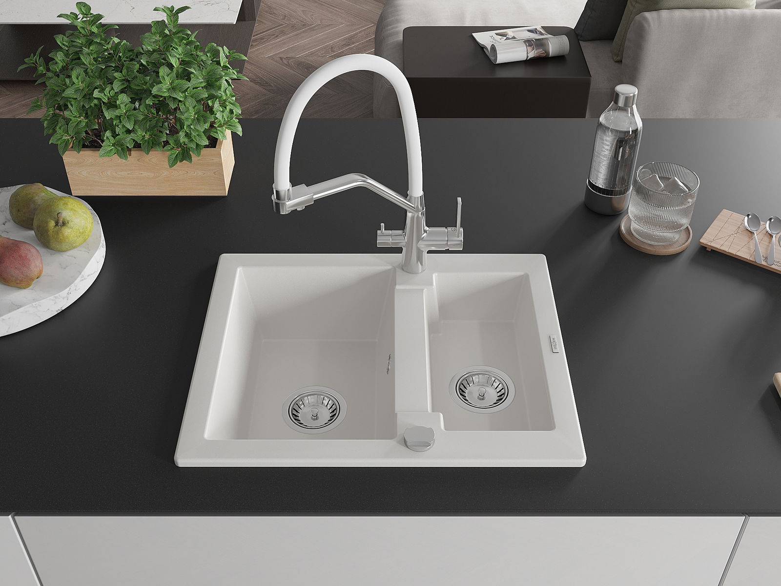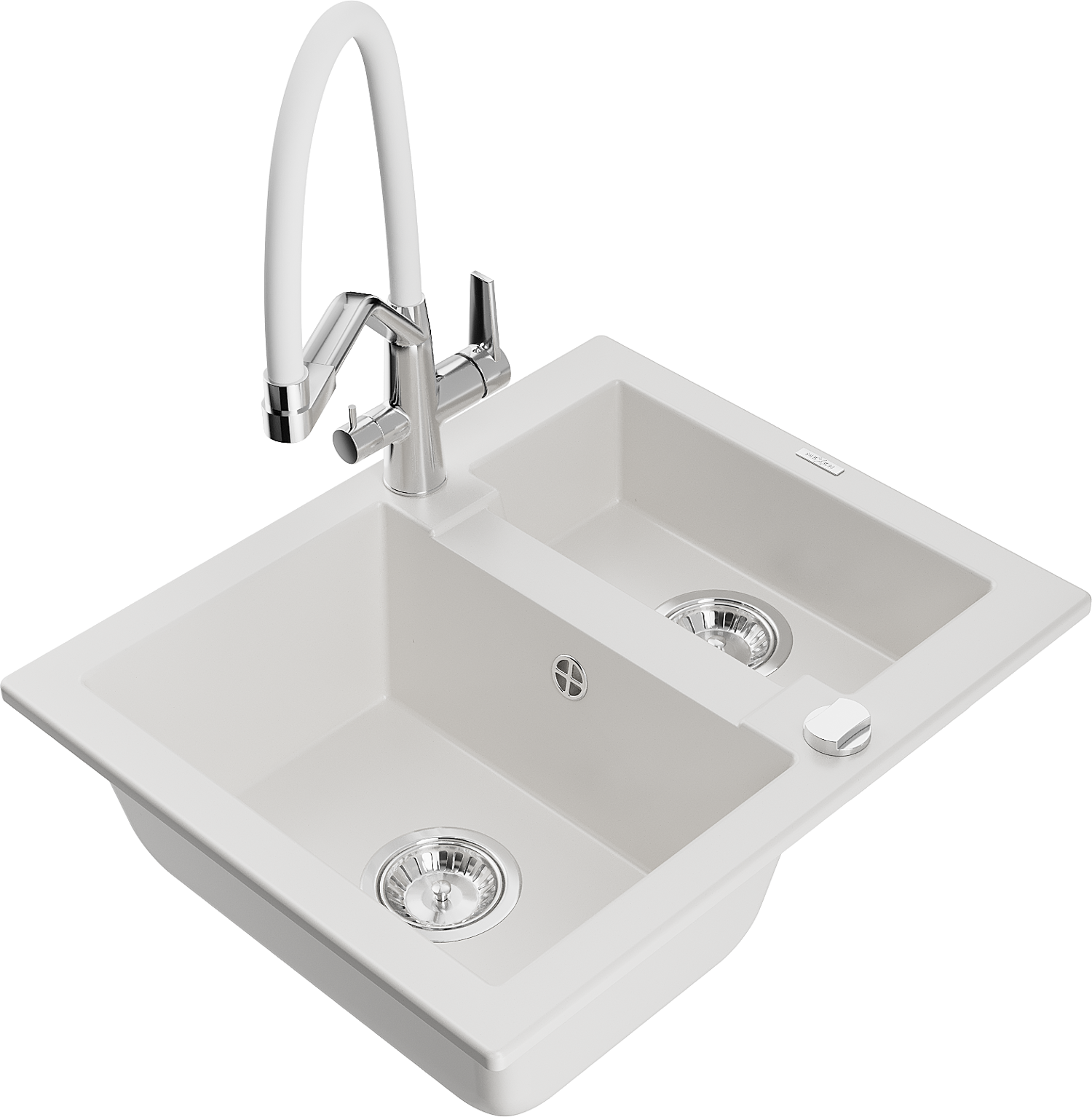 Mexen Carlos évier en granit 1,5 bac avec robinet de cuisine Duo, blanc - 6518-20-671701-02