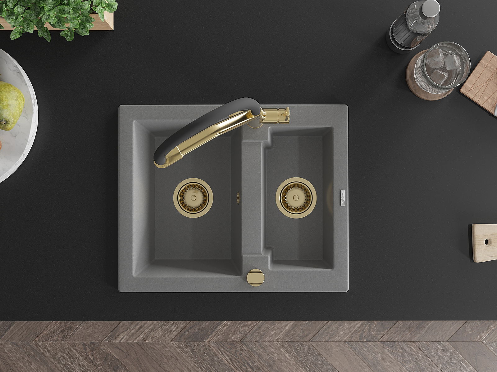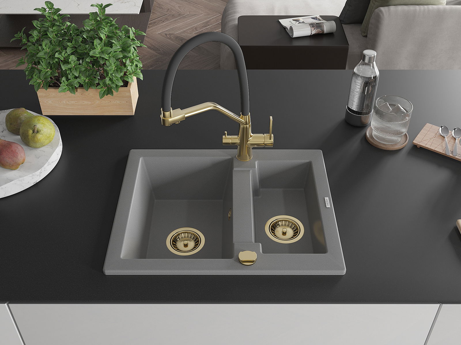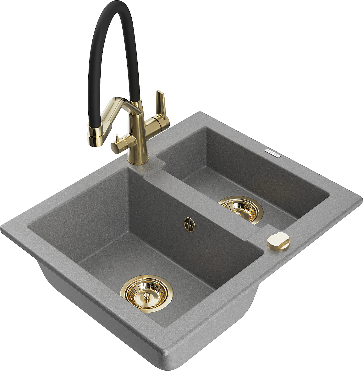 Mexen Carlos évier en granite 1,5 bac avec robinet de cuisine Duo, gris - 6518-71-671701-57-G