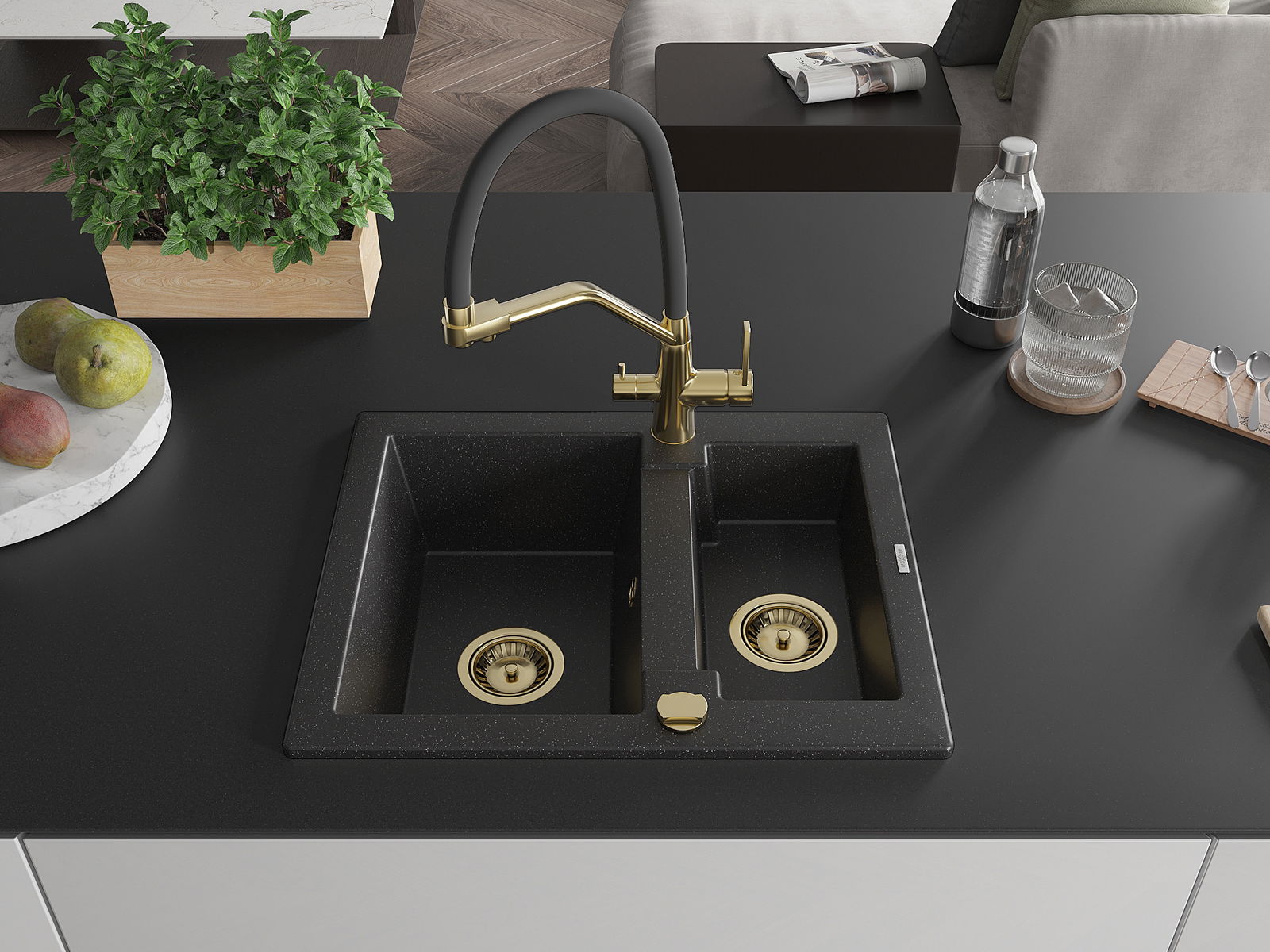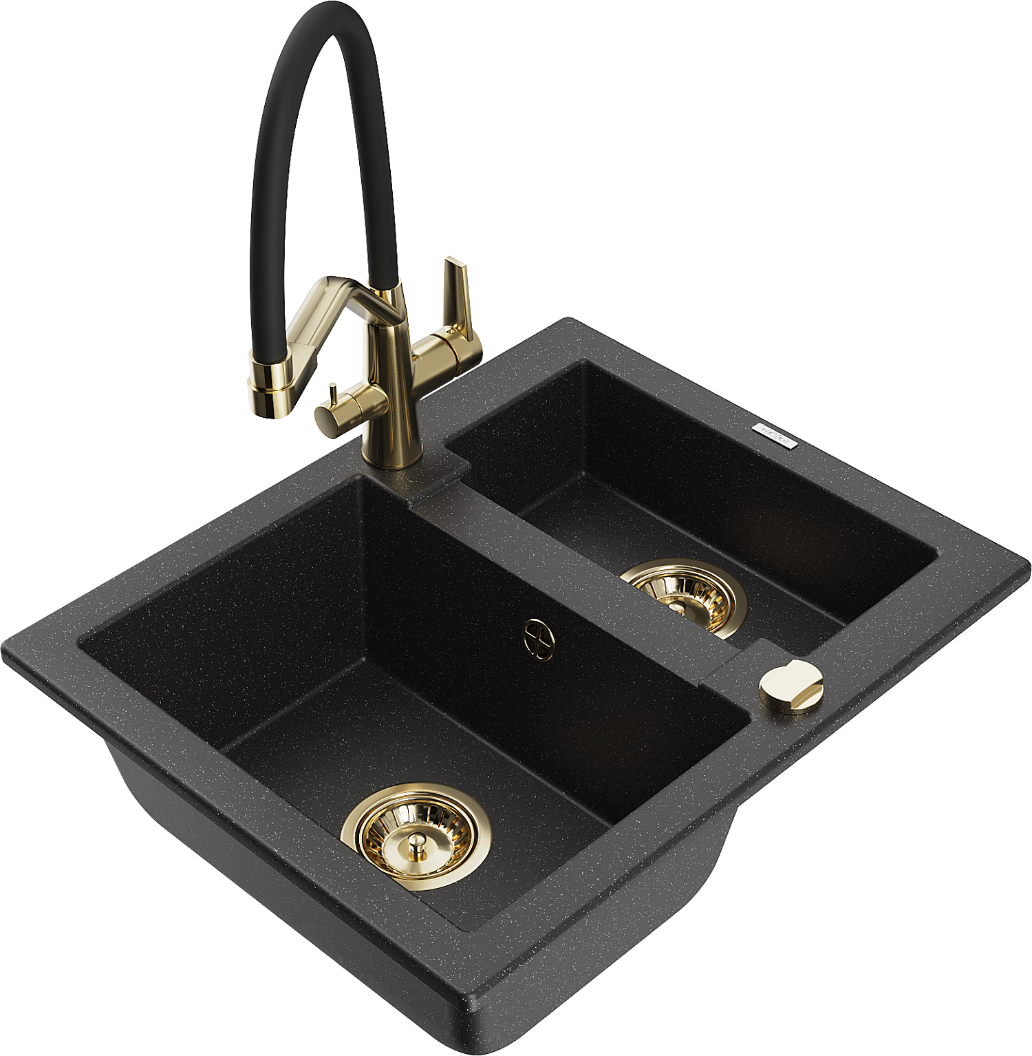 Mexen Carlos évier en granit 1,5 bac avec robinet de cuisine Duo, noir/argent métallique - 6518-73-671701-57-G