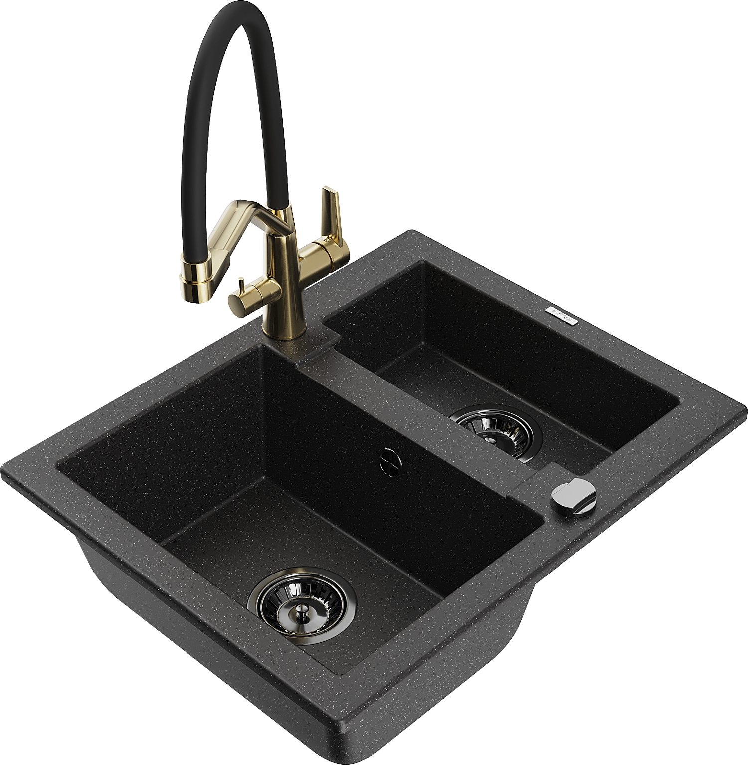 Mexen Carlos évier en granit 1,5 bac avec robinet de cuisine Duo, noir/argent métallisé - 6518-73-671701-57-B