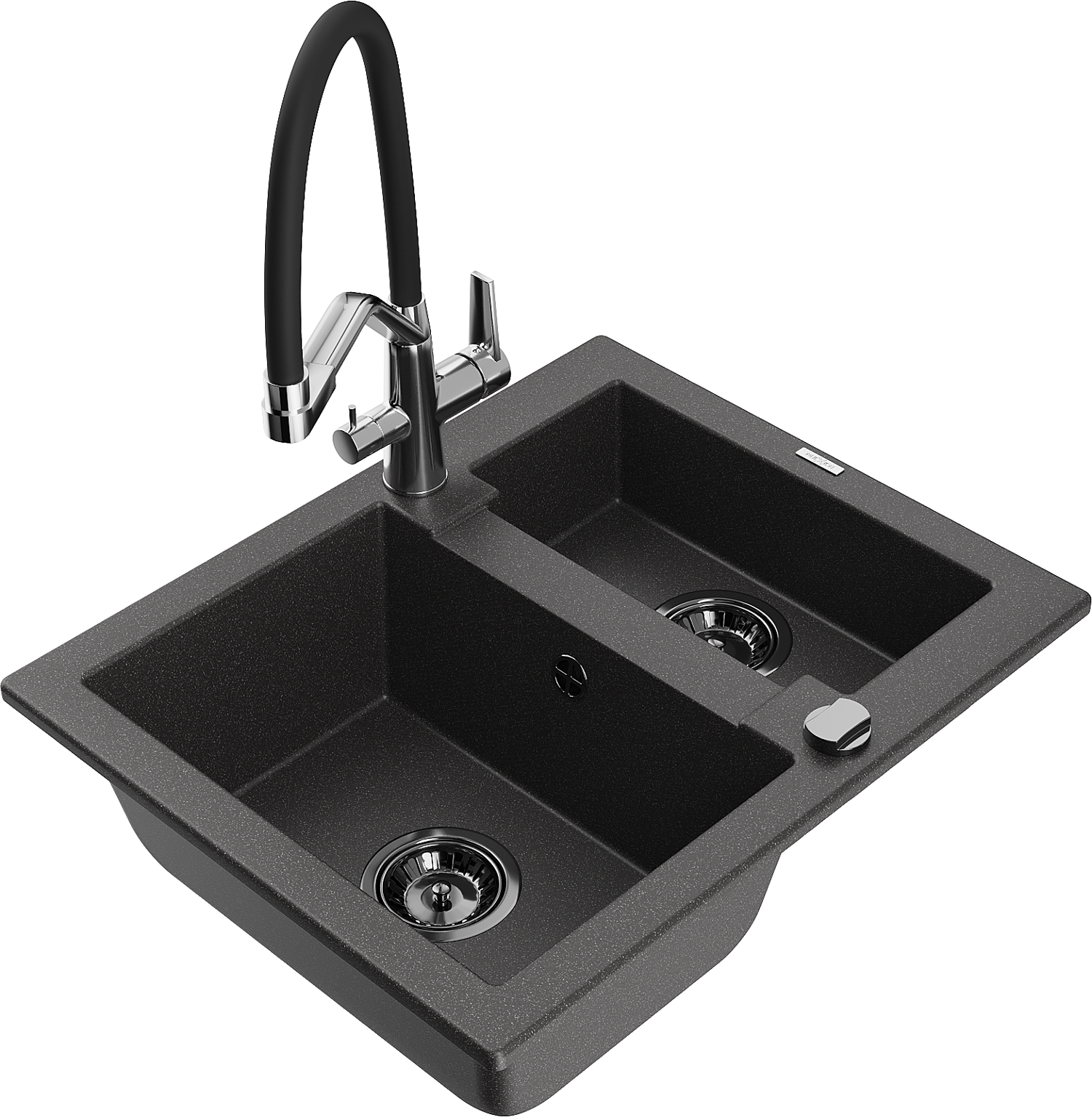 Mexen Carlos évier en granit 1,5 bac avec robinet de cuisine Duo, noir moucheté - 6518-76-671701-07-B