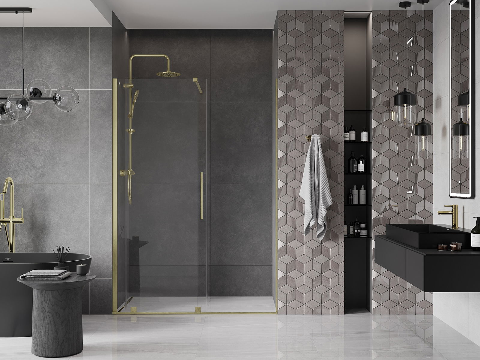 Mexen Velar porte de douche coulissante 130 cm, transparent, doré brossé - 871-130-000-01-55