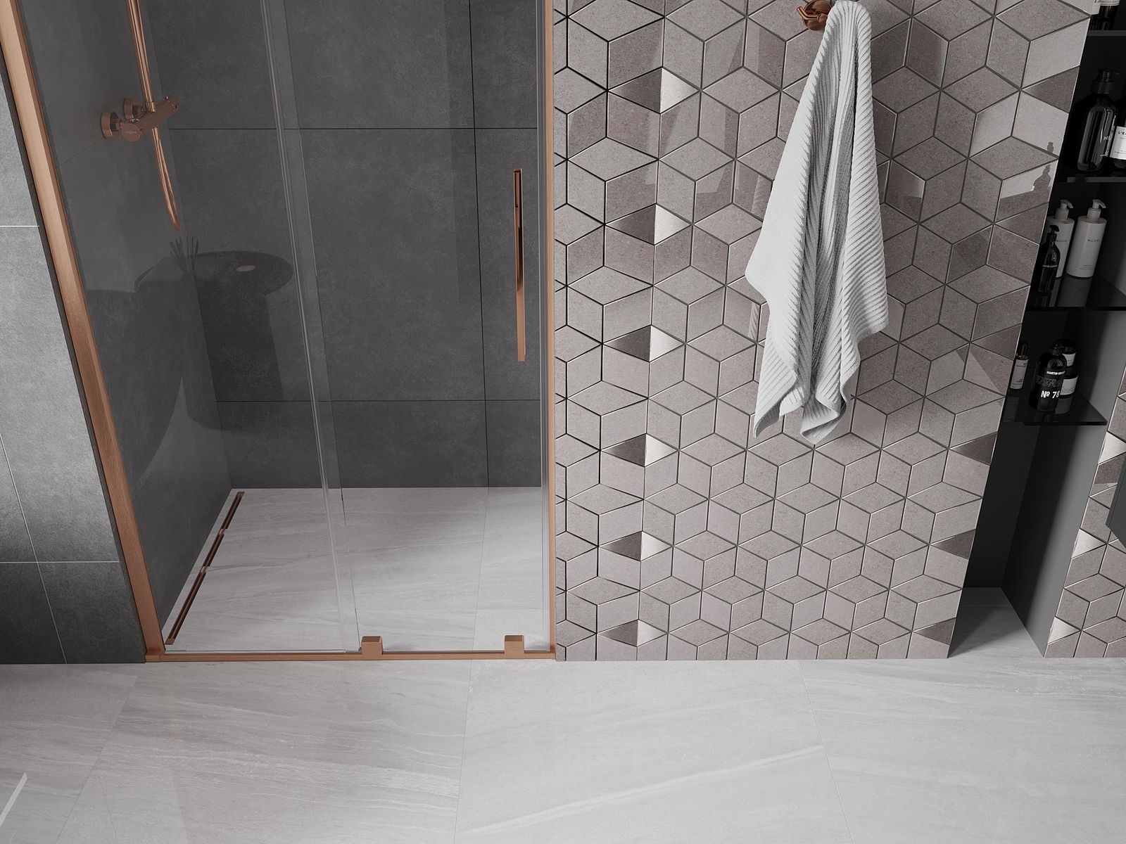 Poignée pratique et confortable en acier inoxydable. La forme moderne associée à une finition assortie à la couleur des profilés confère à l'ensemble un aspect moderne et élégant, soulignant l'esthétique de chaque salle de bain.