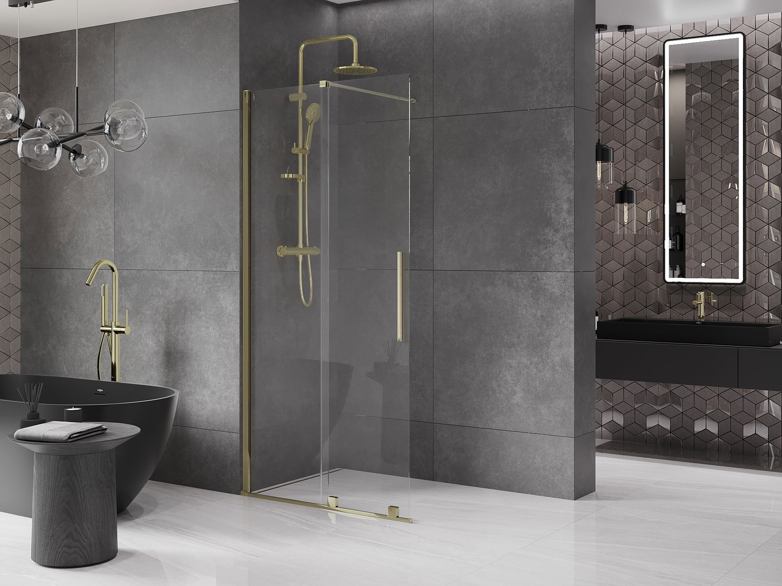 Mexen Velar paroi de douche coulissante Walk-in 100 x 200 cm, transparent 8 mm, doré - 871-100-000-03-50