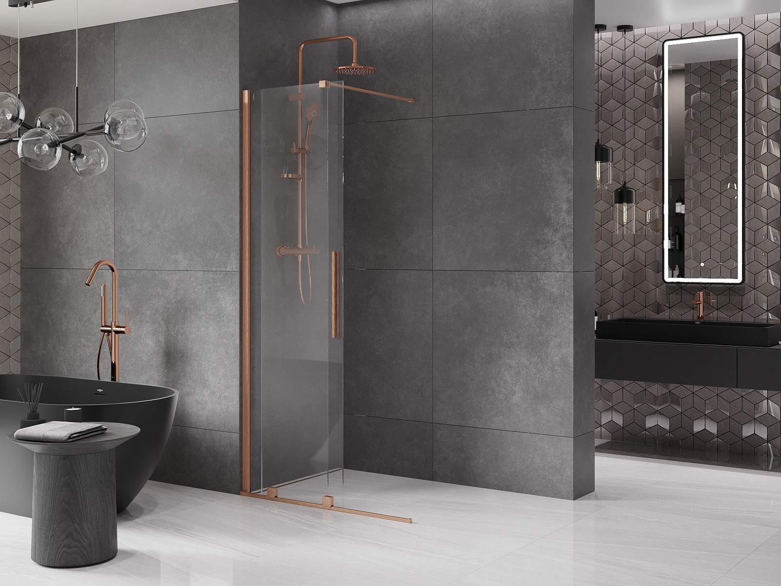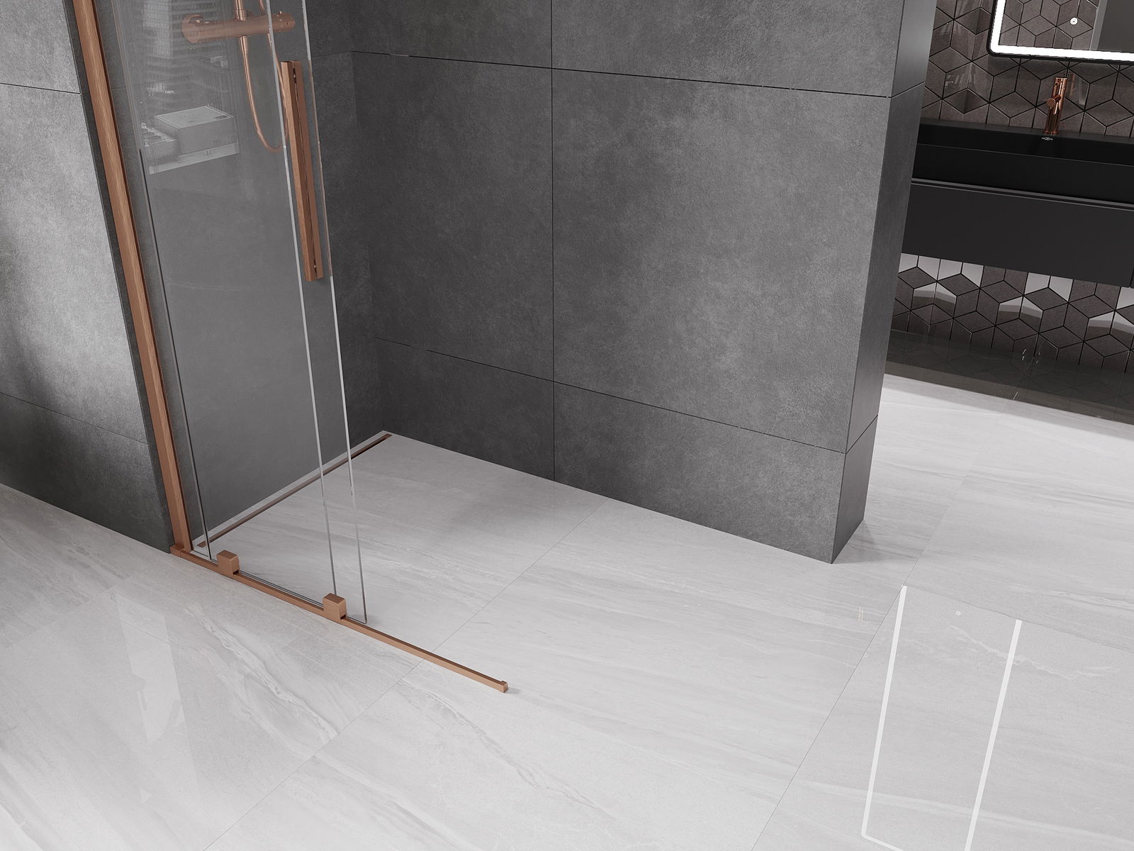 Mexen Velar paroi de douche coulissante Walk-in 75 x 200 cm, transparent 8 mm, cuivre brossé - 871-075-000-03-65