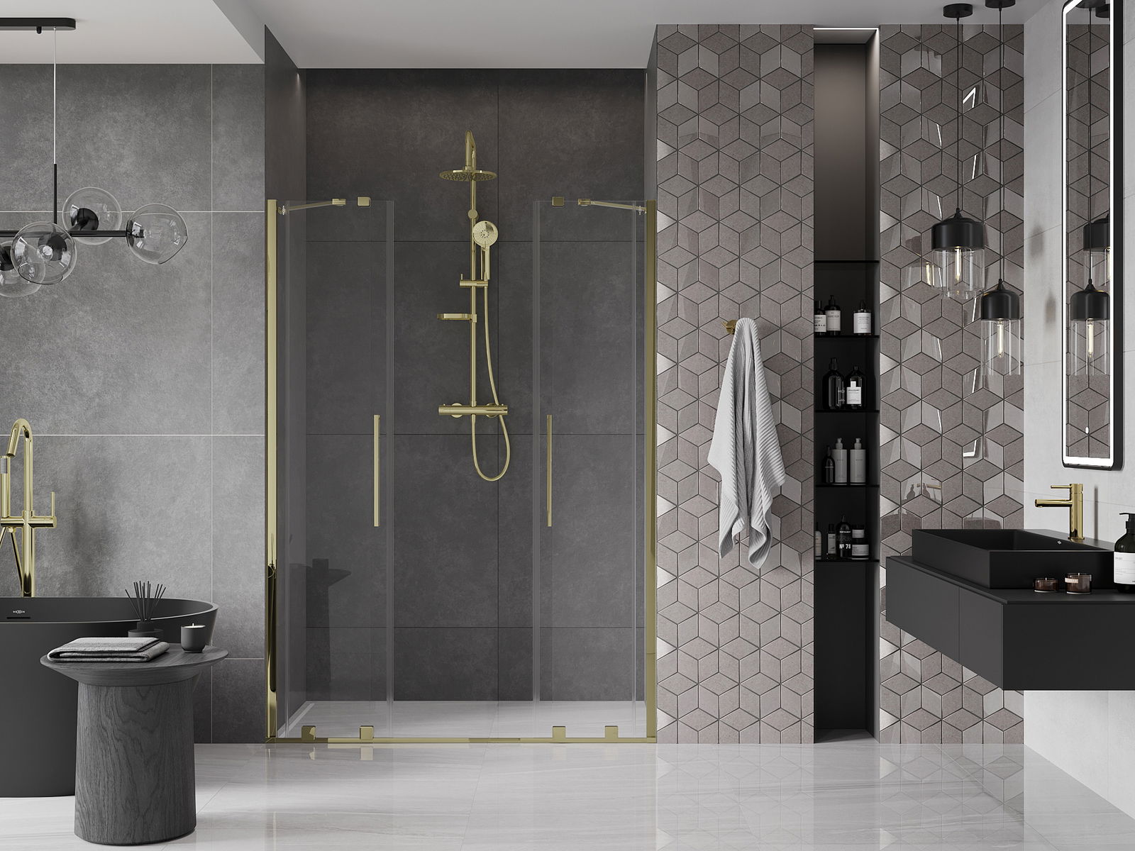Mexen Velar Duo portes de douche coulissantes 140 cm, transparentes, dorées - 871-140-000-02-50
