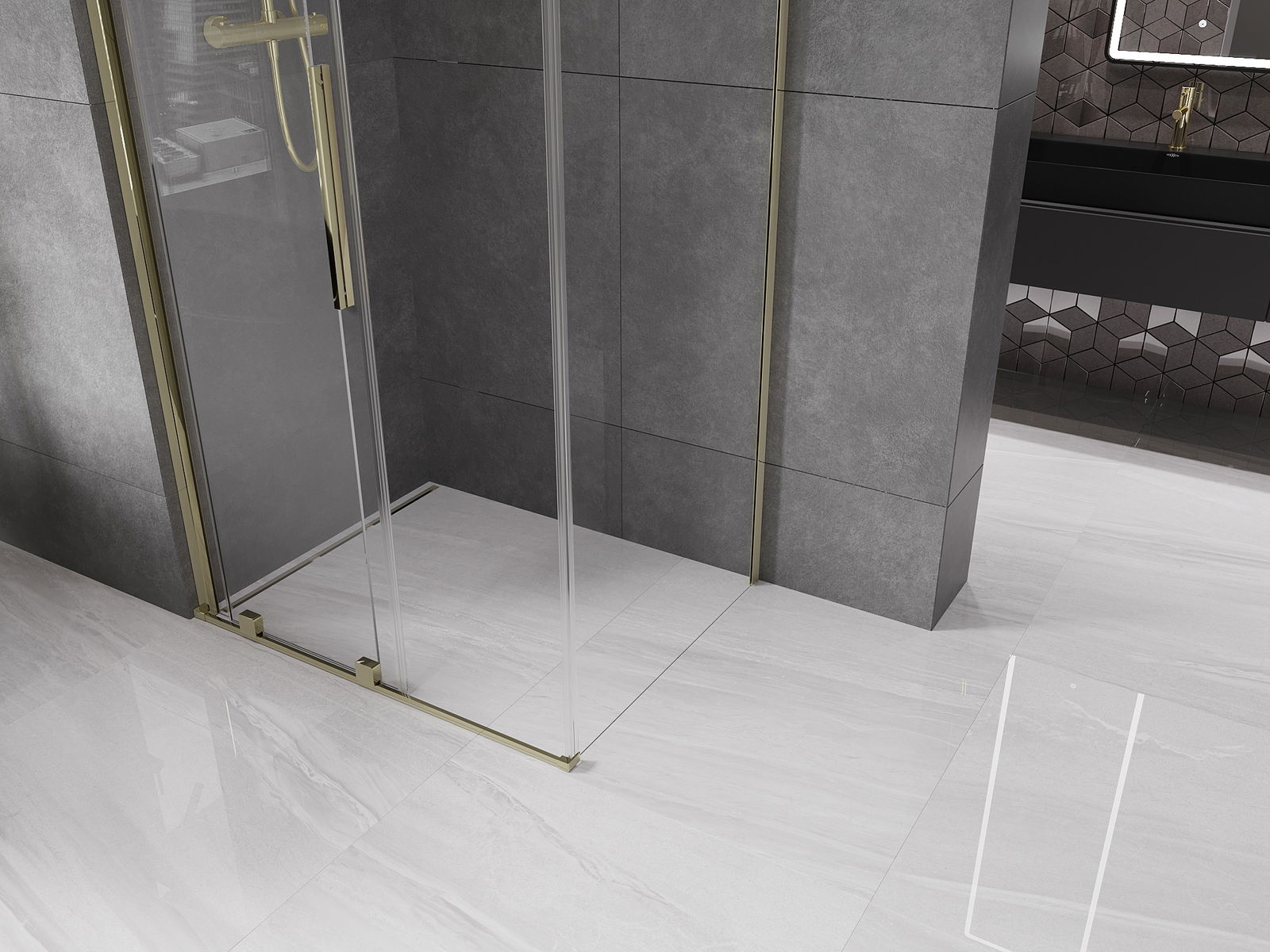 Mexen Velar cabine de douche coulissante 100 x 85 cm, transparente, dorée - 871-100-085-01-50