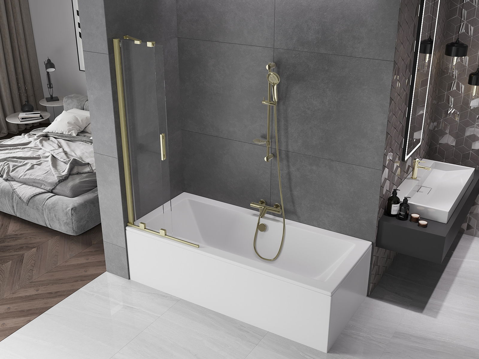 Paroi de baignoire Mexen Velar à 2 volets coulissants 70 x 150 cm, transparent, or brossé - 896-070-000-01-55